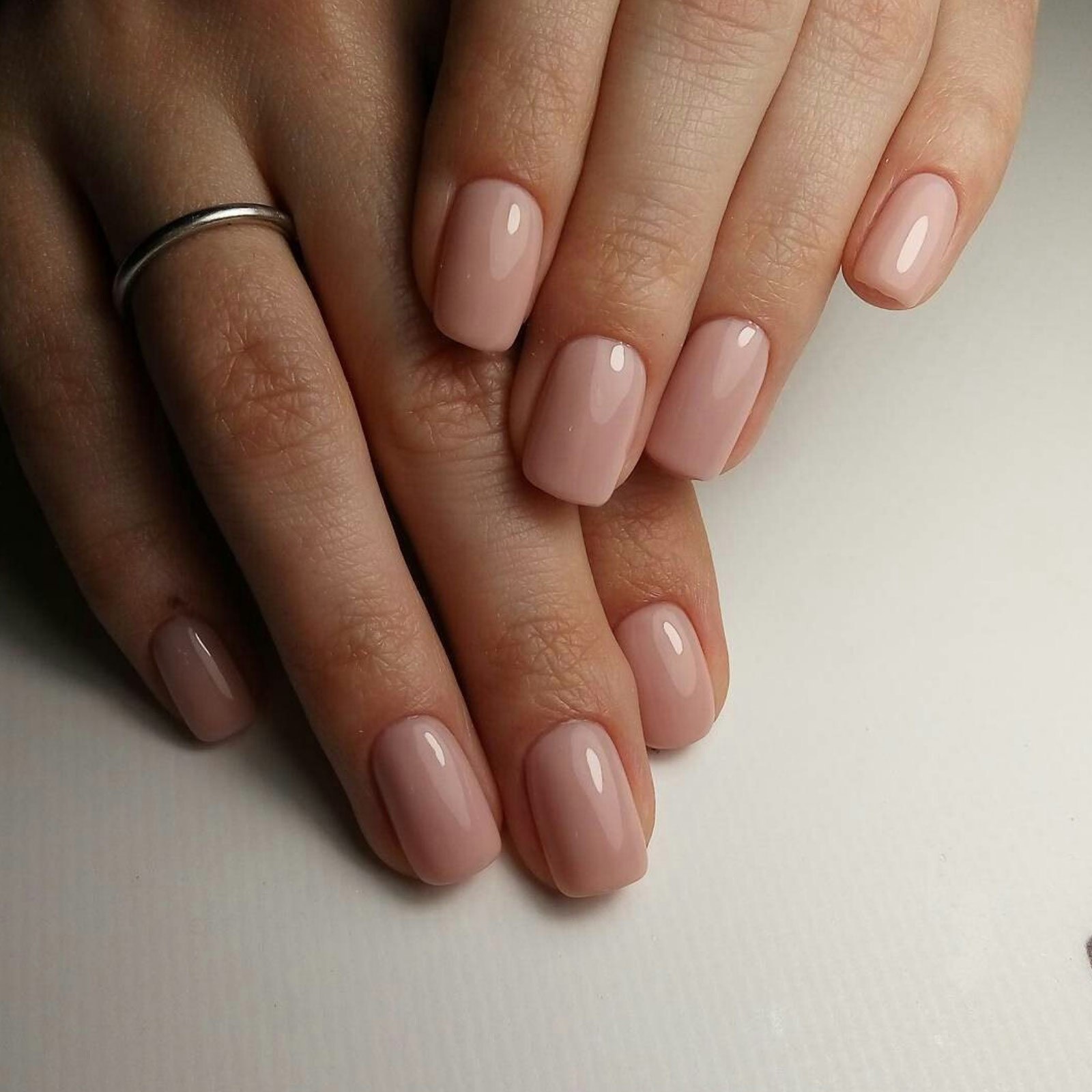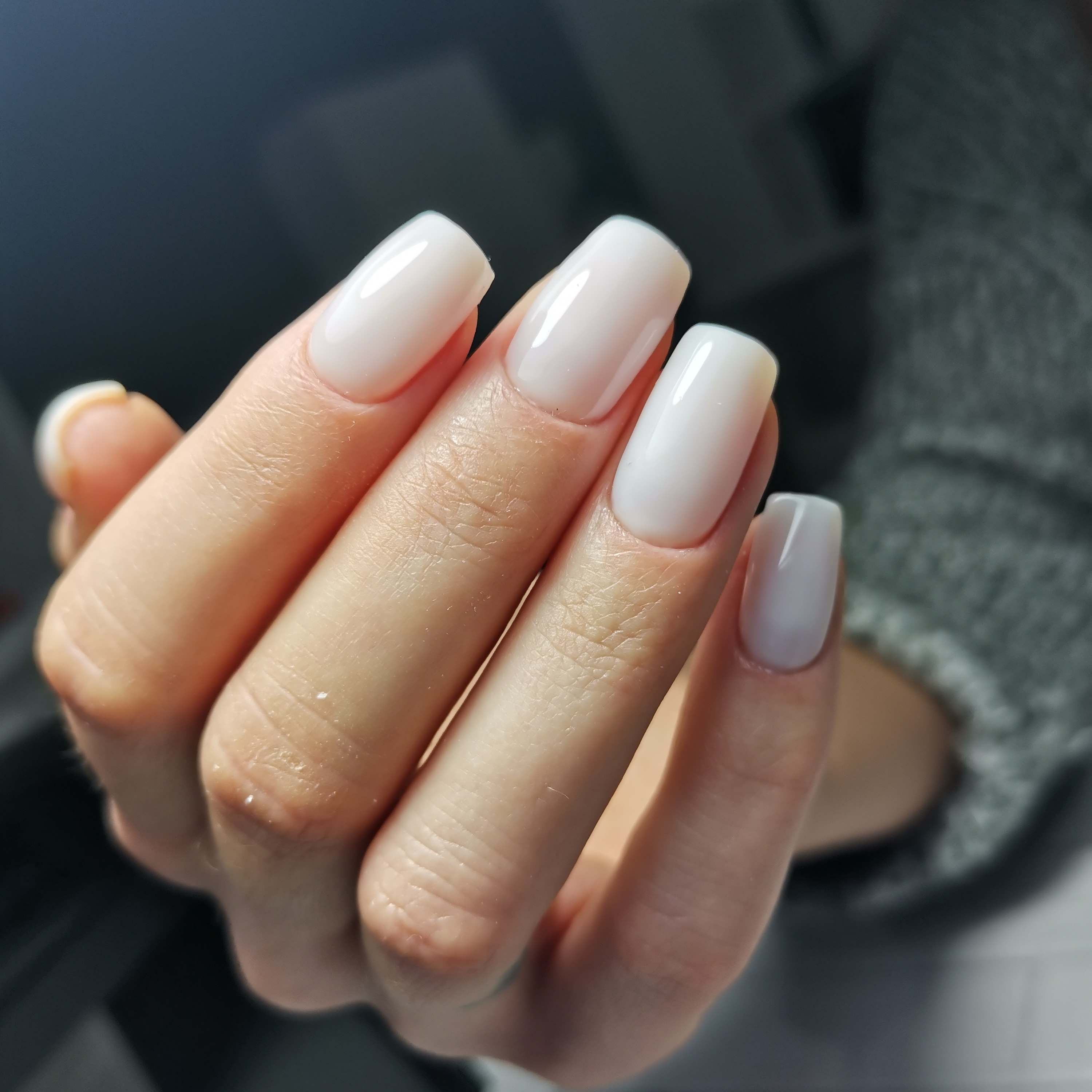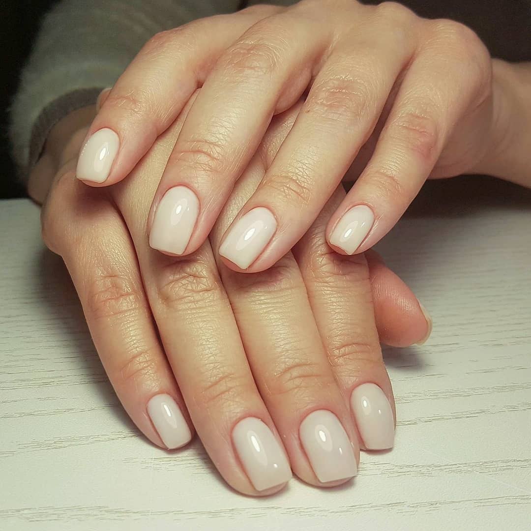 Однотонный маникюр молочный