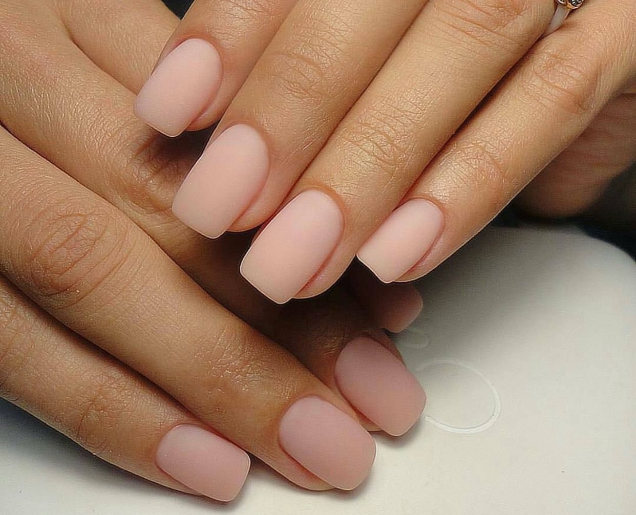 Нюдовый маникюр матовый на квадрате