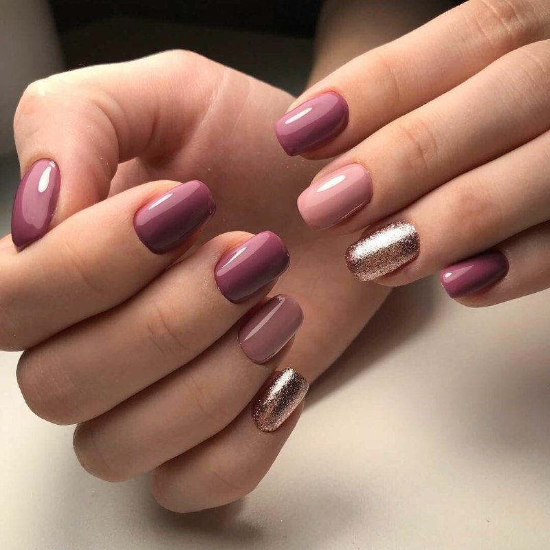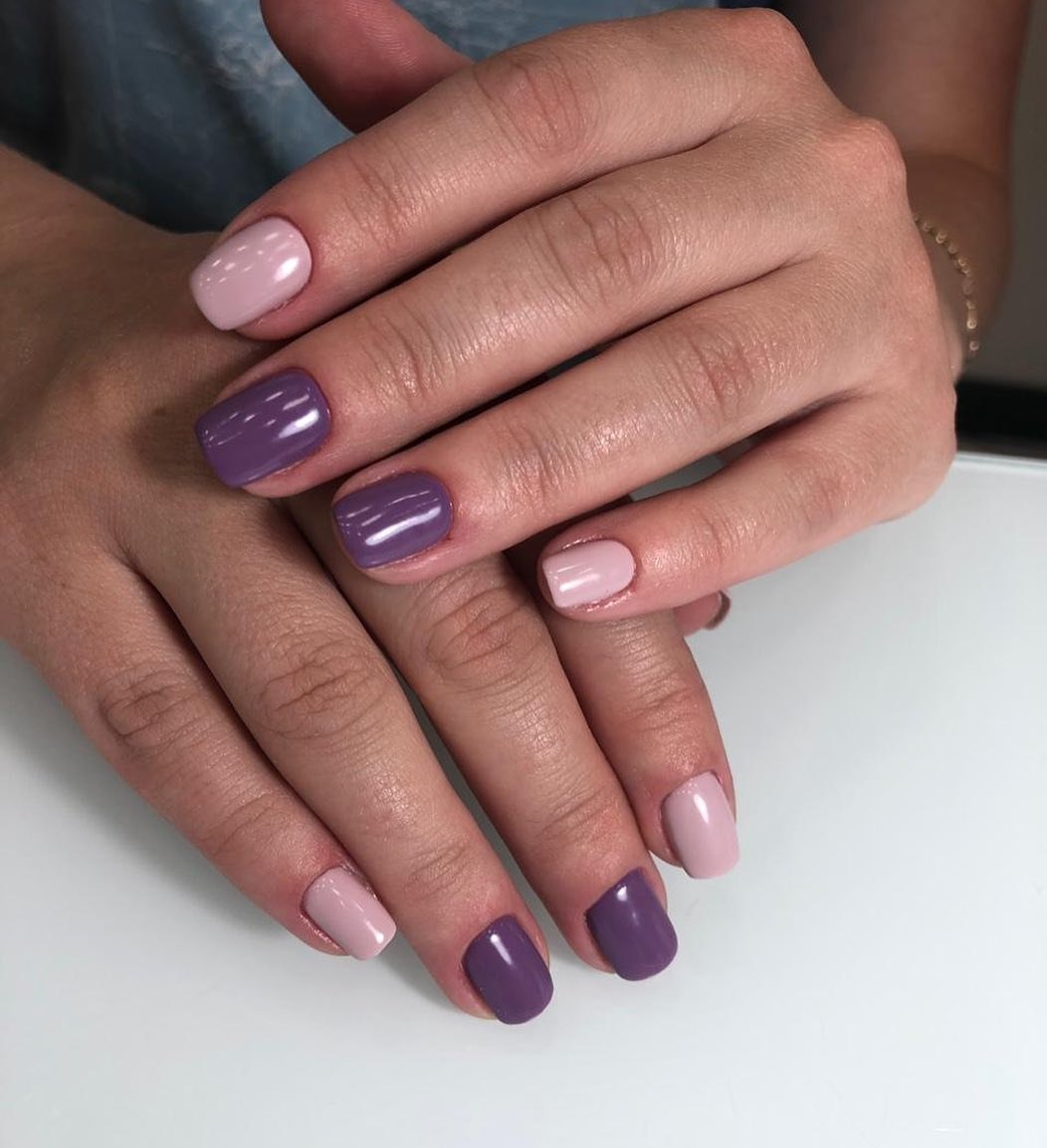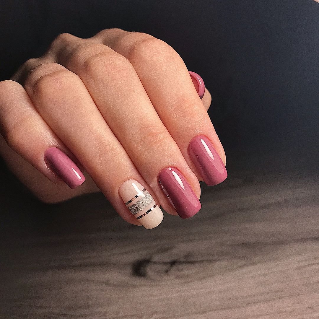Комбинированный маникюр однотонное покрытие