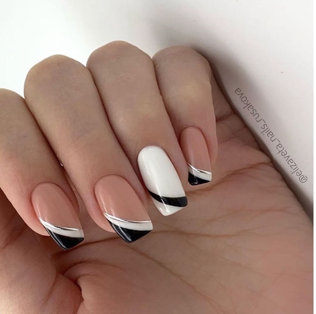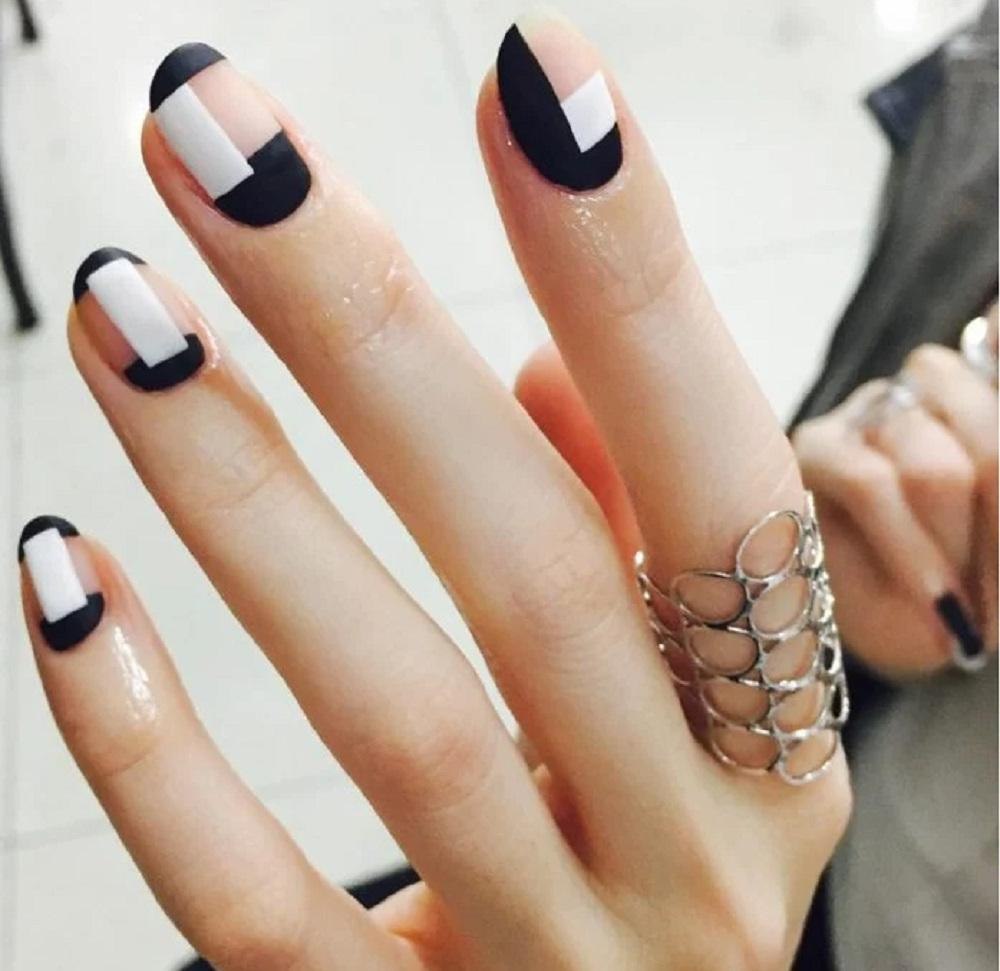 Маникюр двухцветный геометрия
