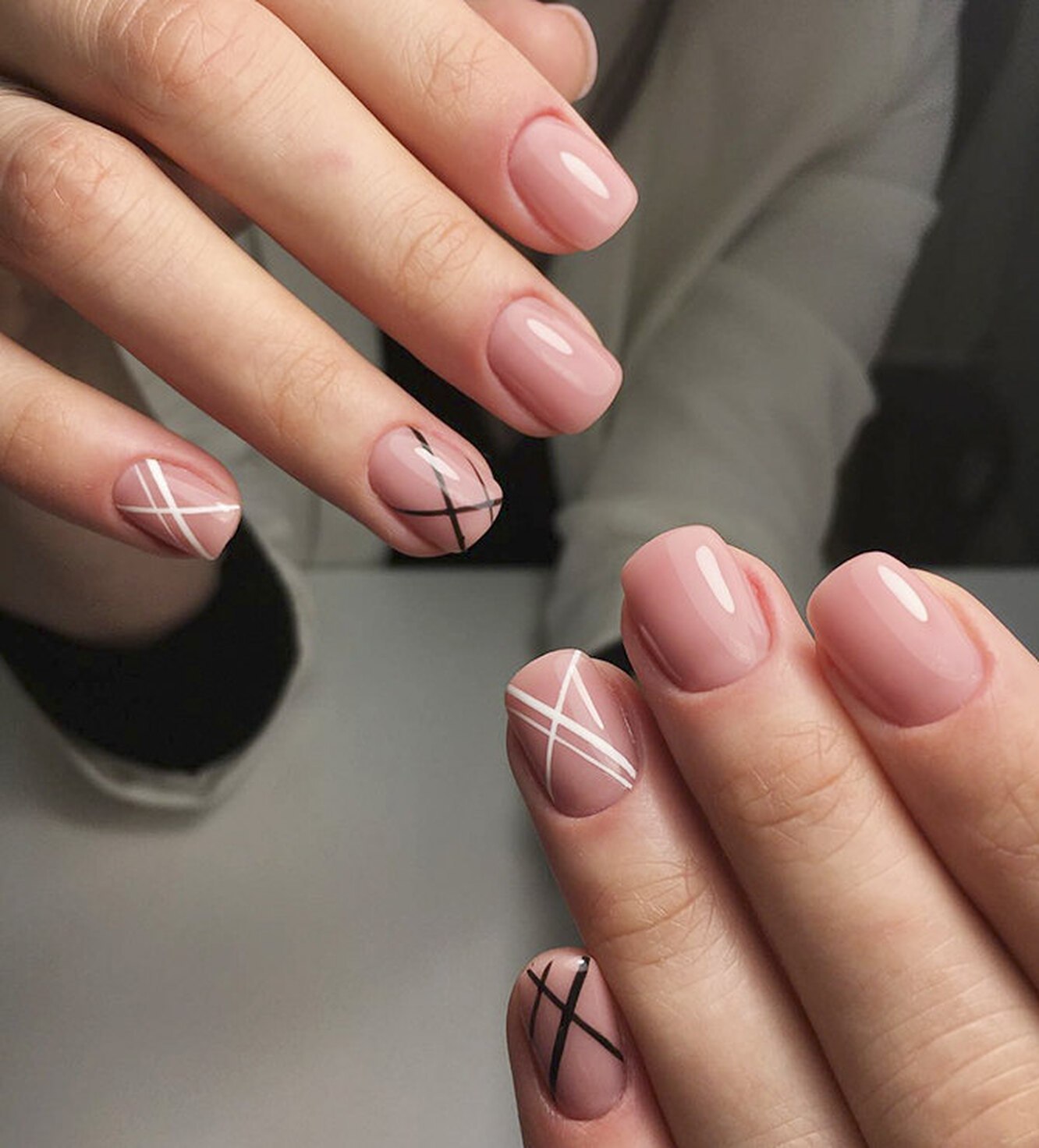Нюдовый маникюр с геометрией