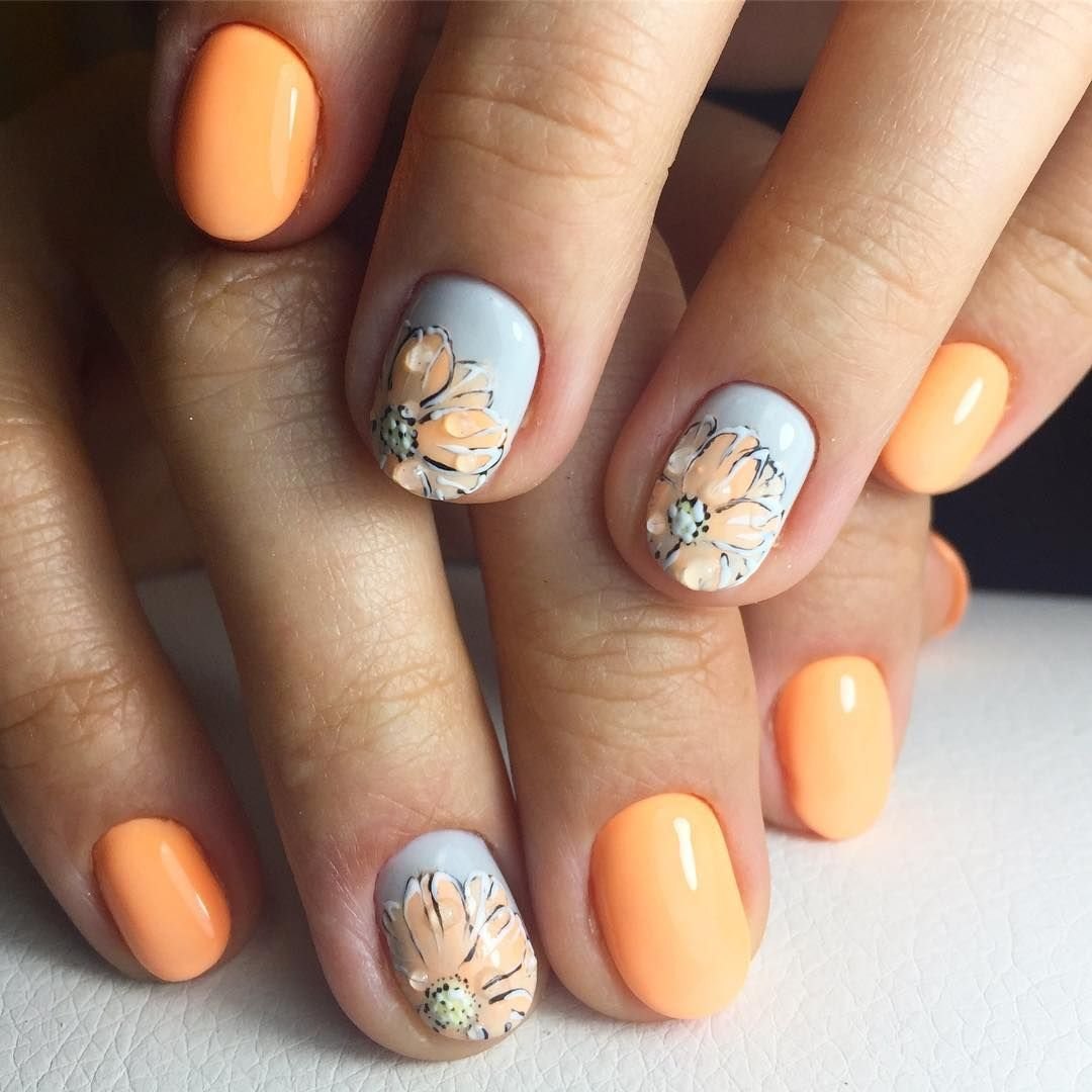 Бежевый маникюр с цветами