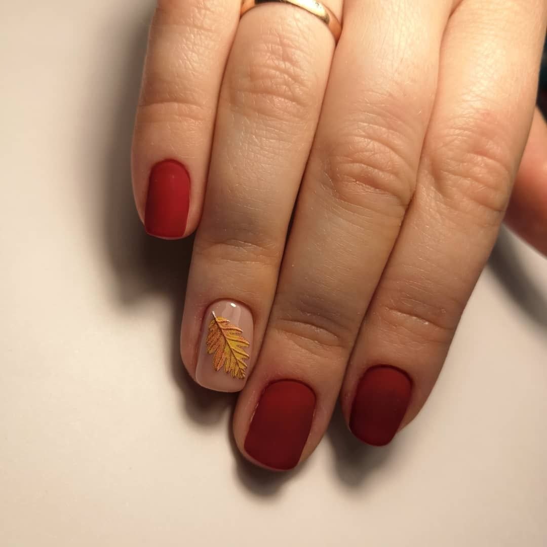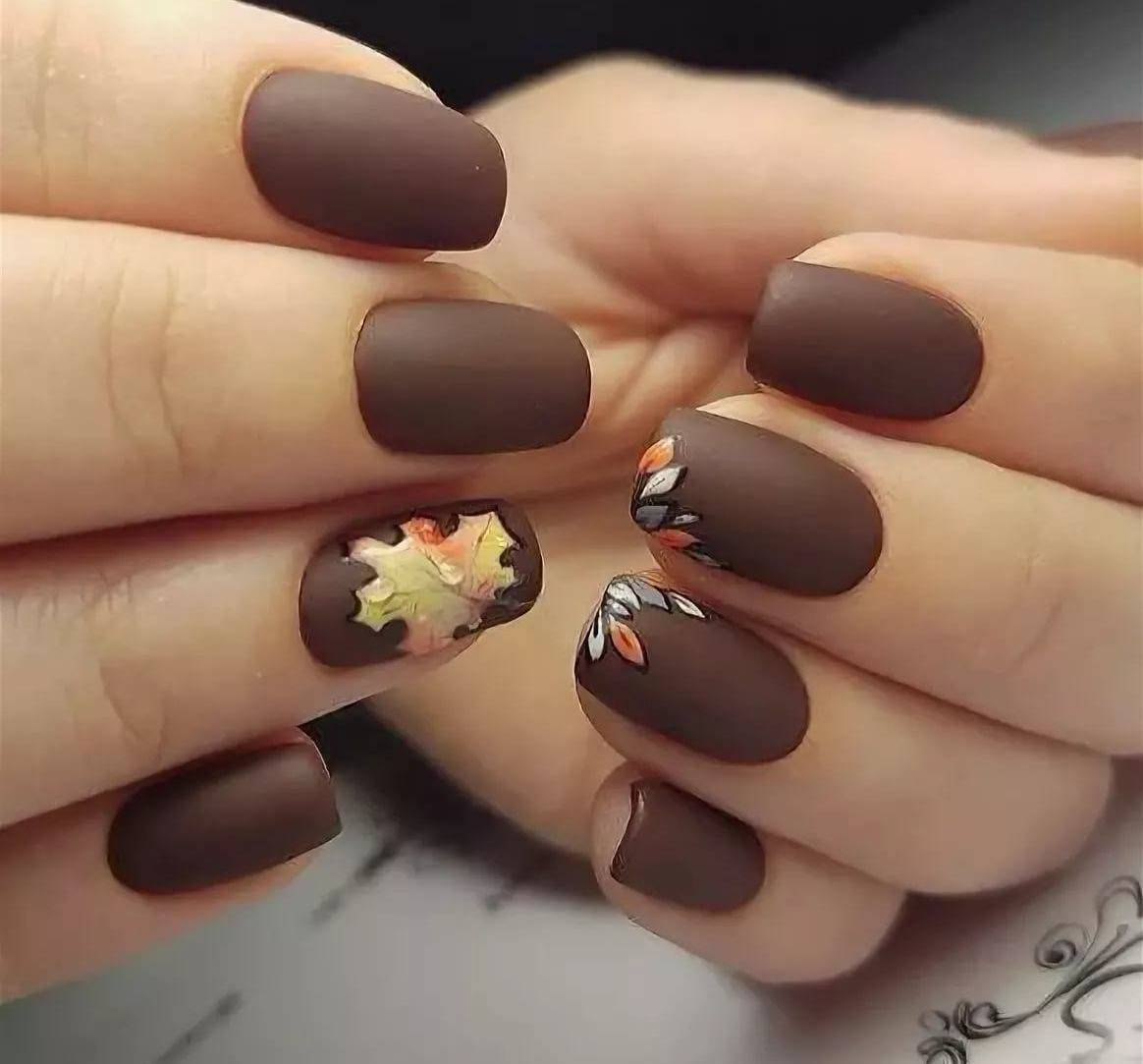 Матовый осенний маникюр 2020 на короткие ногти