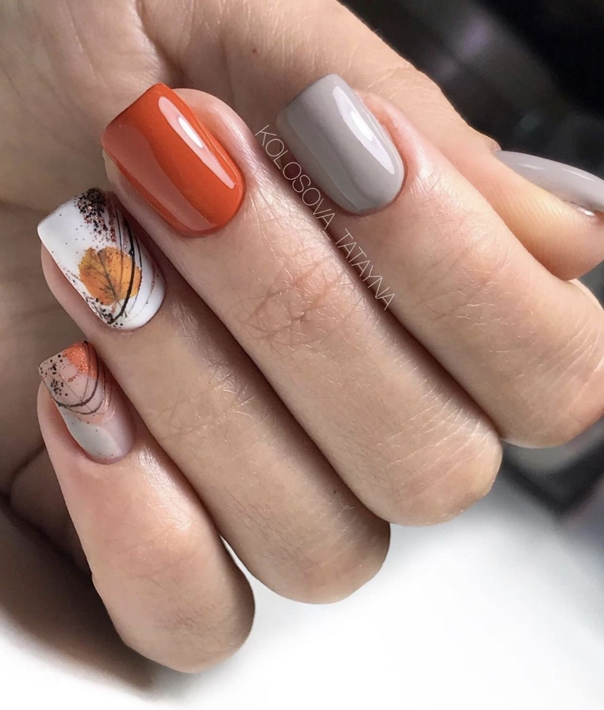 Осенний маникюр на квадратные ногти