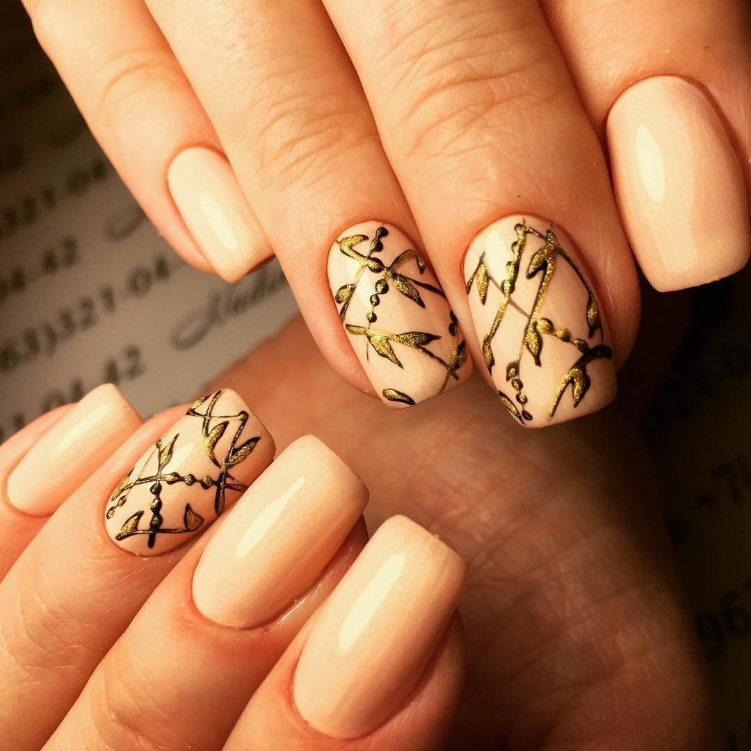 Маникюр беж с золотом 2022