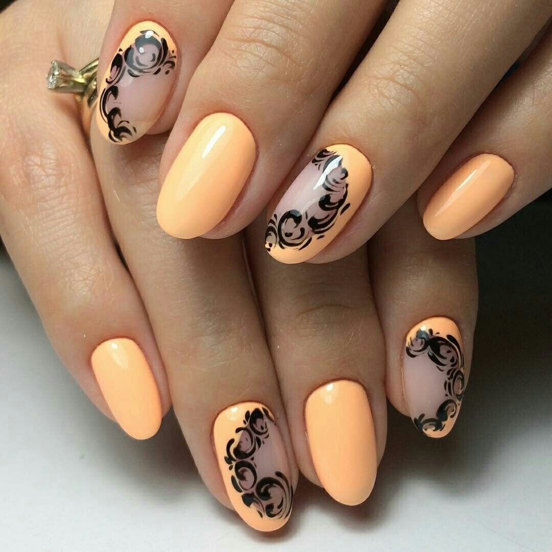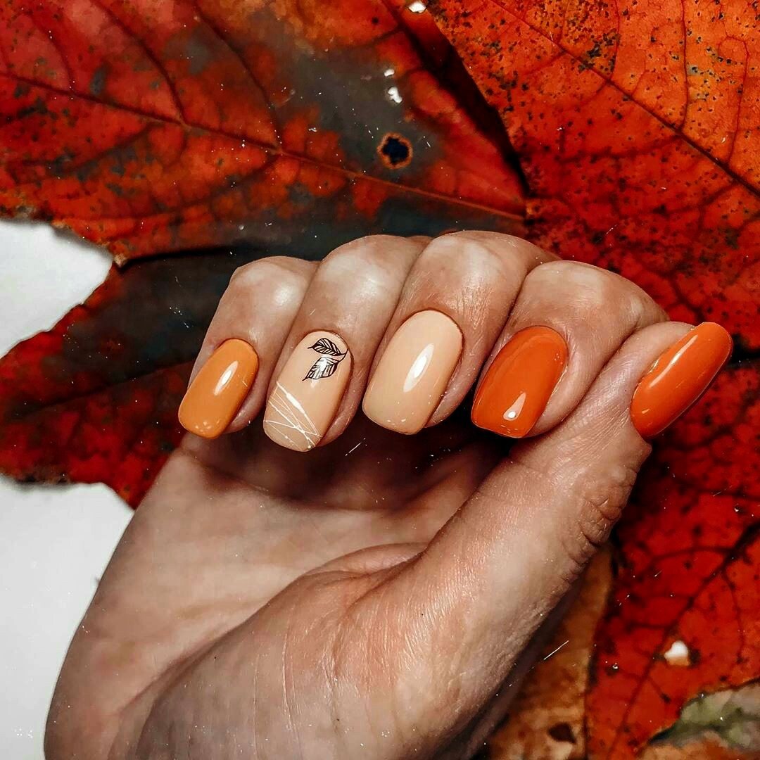 Оранжевый осенний маникюр