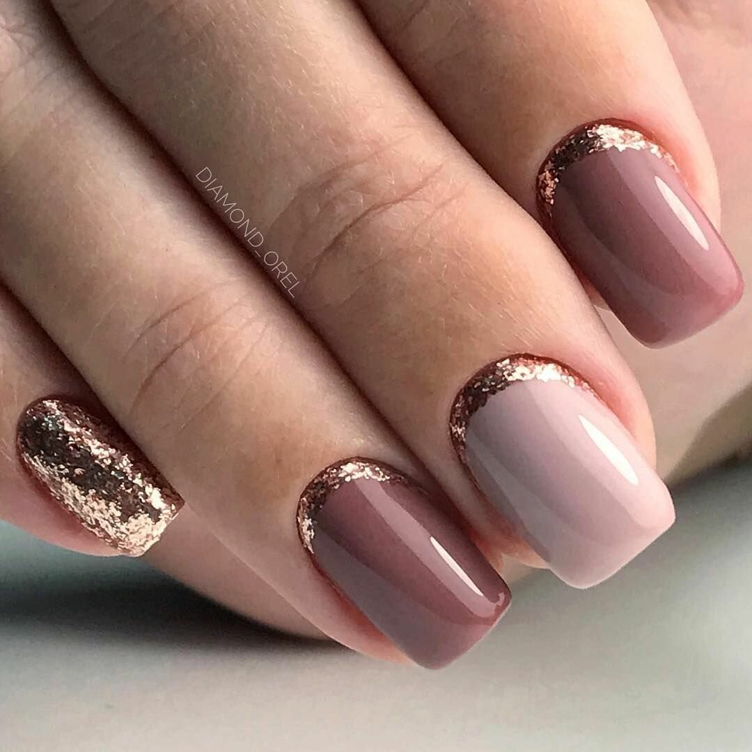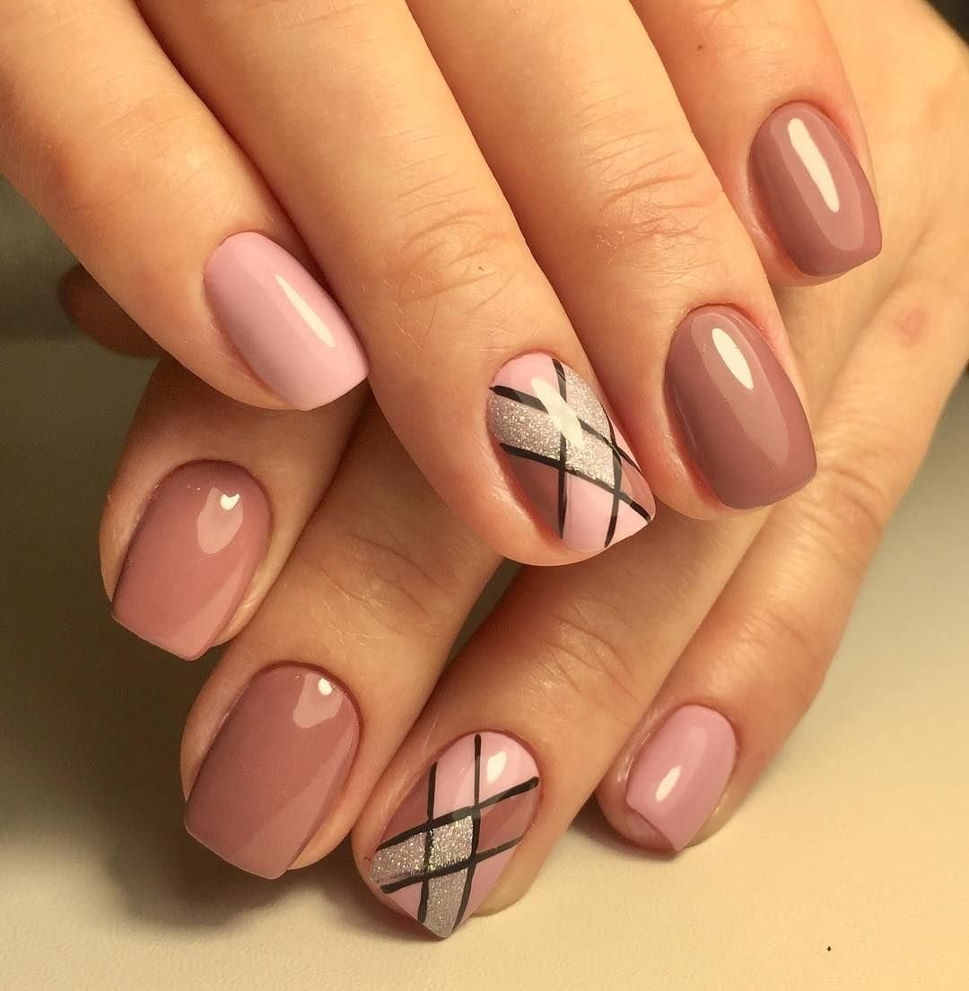 Маникюр коричневый с розовым
