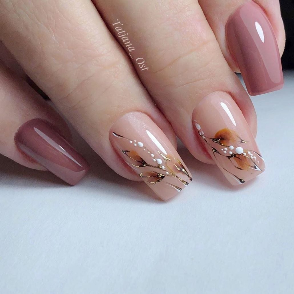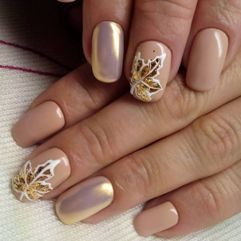 Нюдовый осенний маникюр