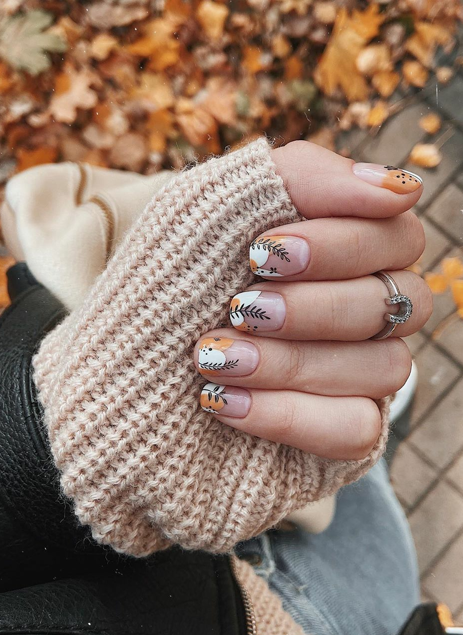 Нежный осенний маникюр на короткие ногти