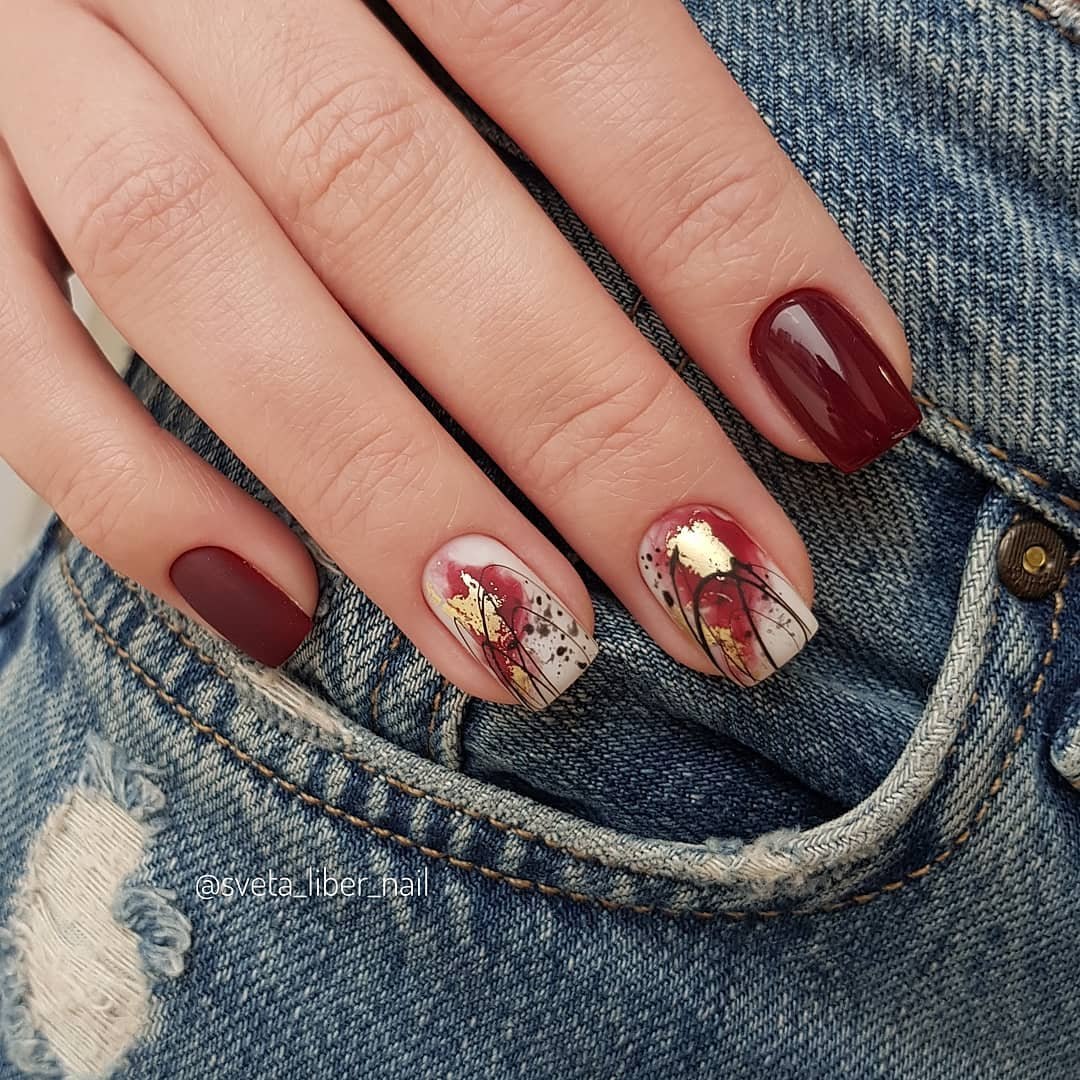 Маникюр цвета бургунди