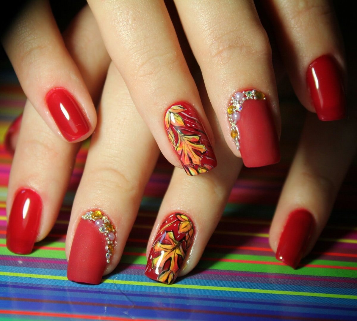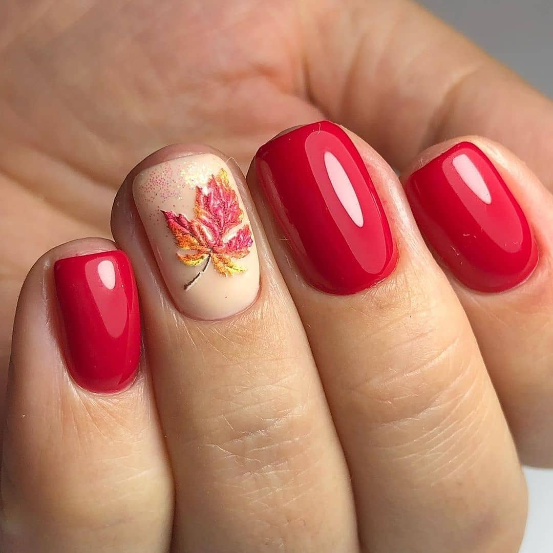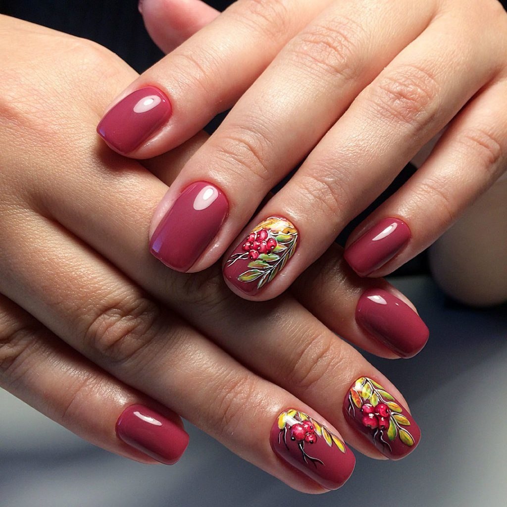 Осенний маникюр в малиновых тонах