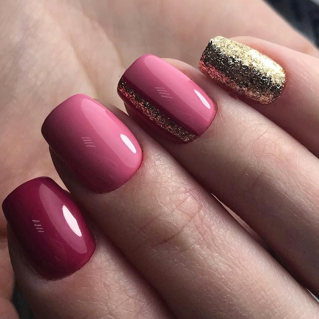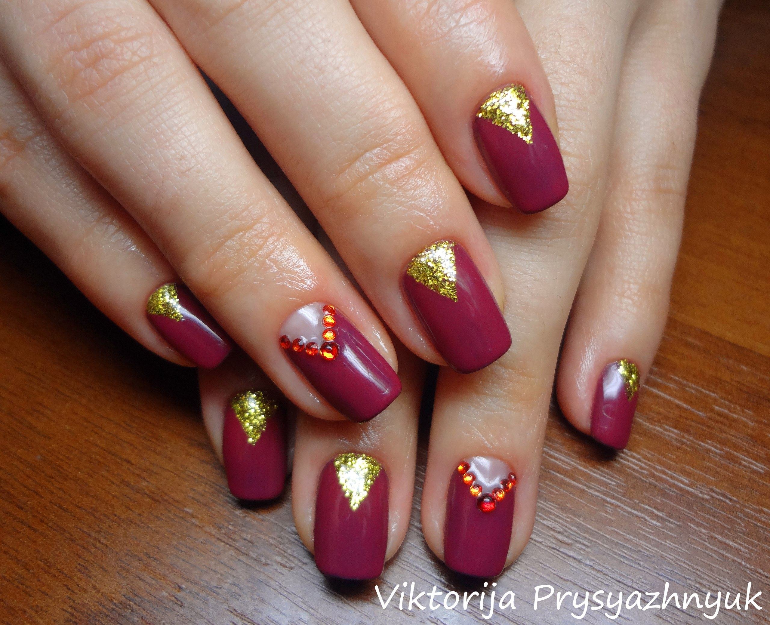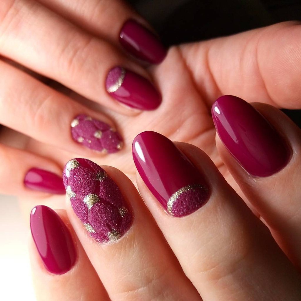 Маникюр малиновый с золотом