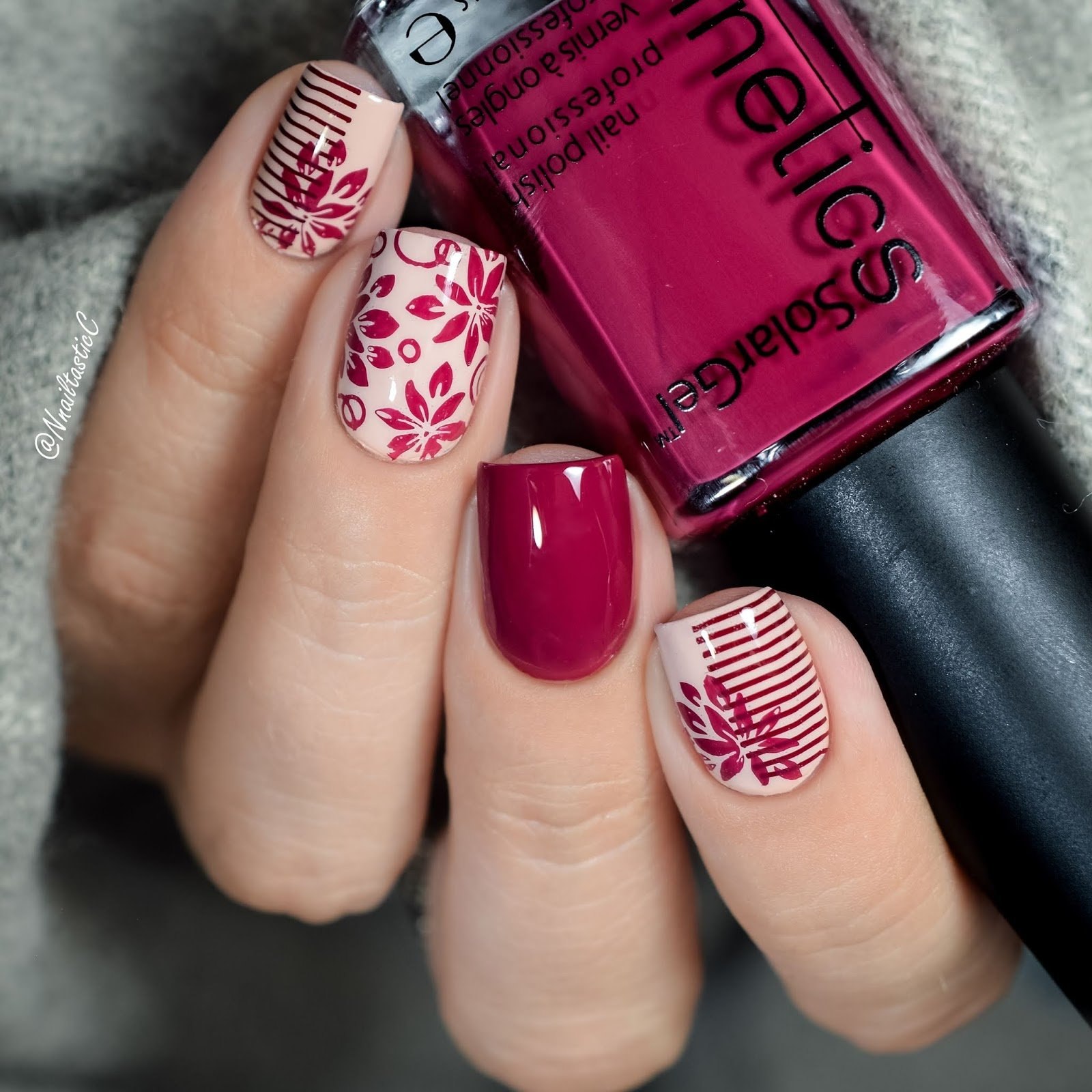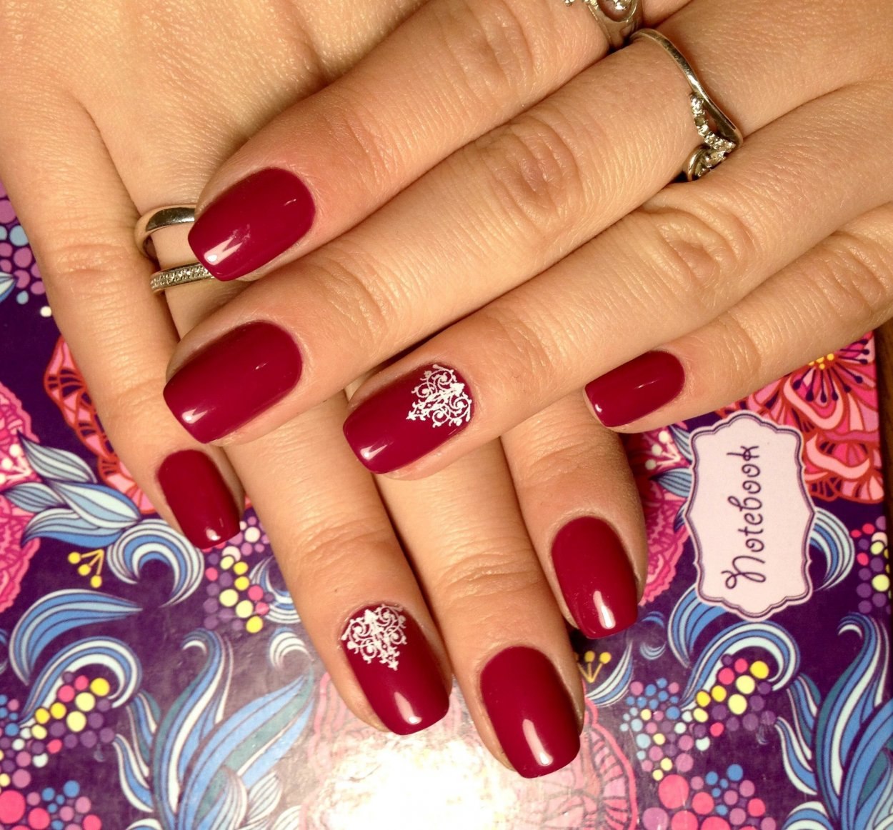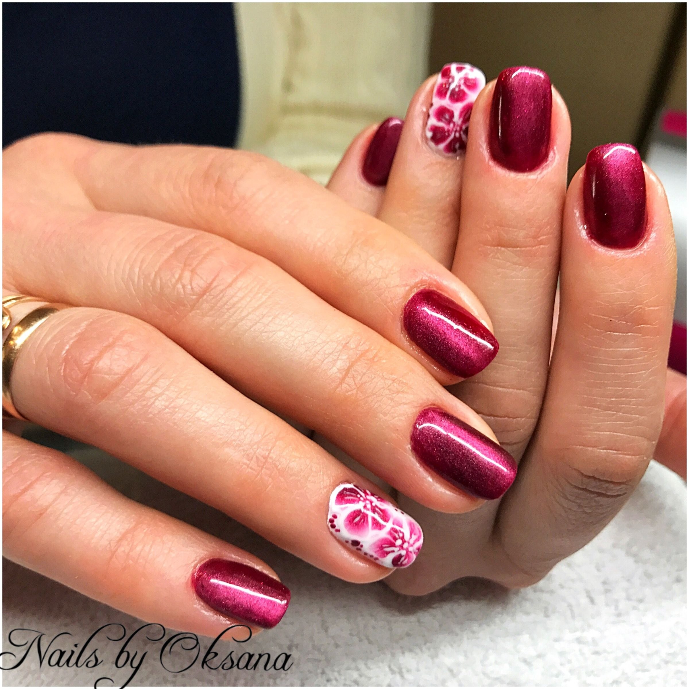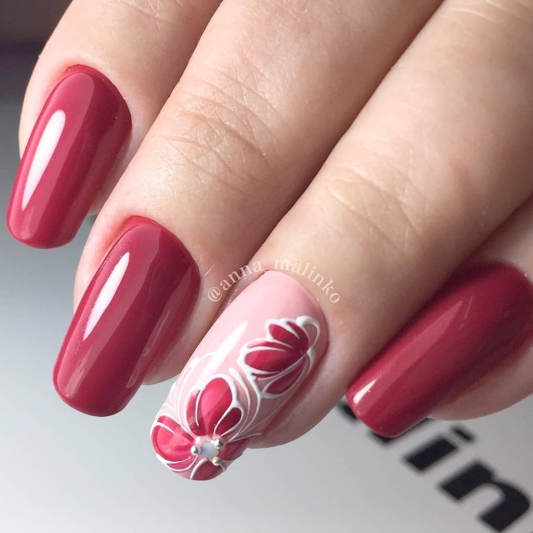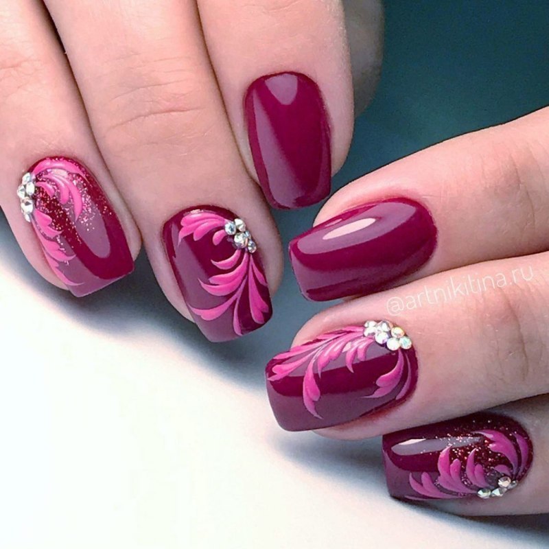Маникюр малиновый с узором