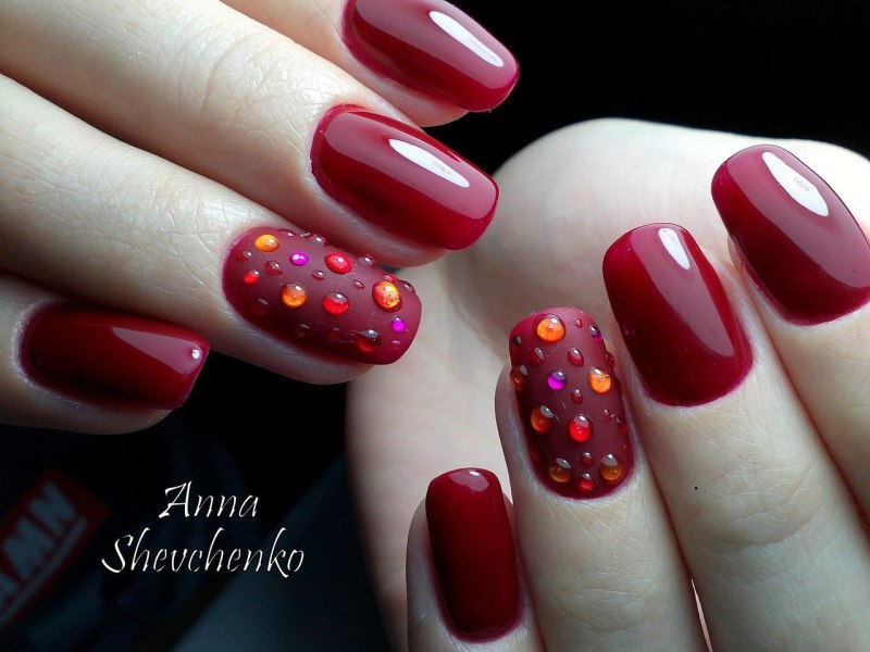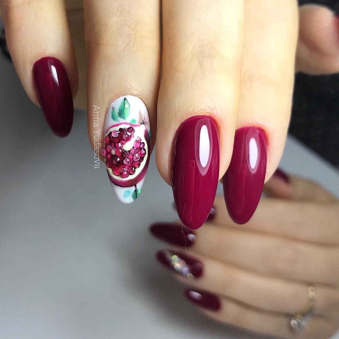 Маникюр гранатового цвета