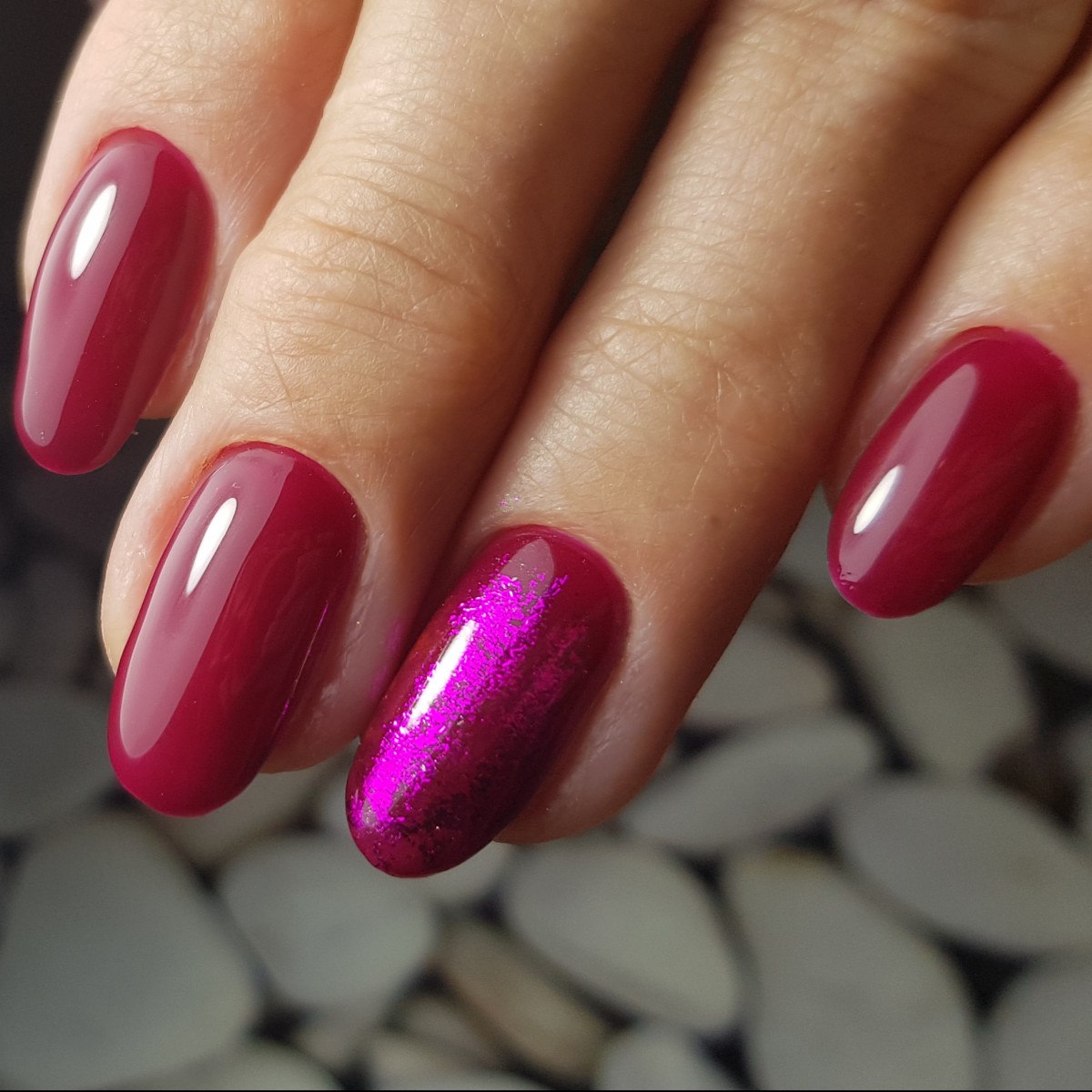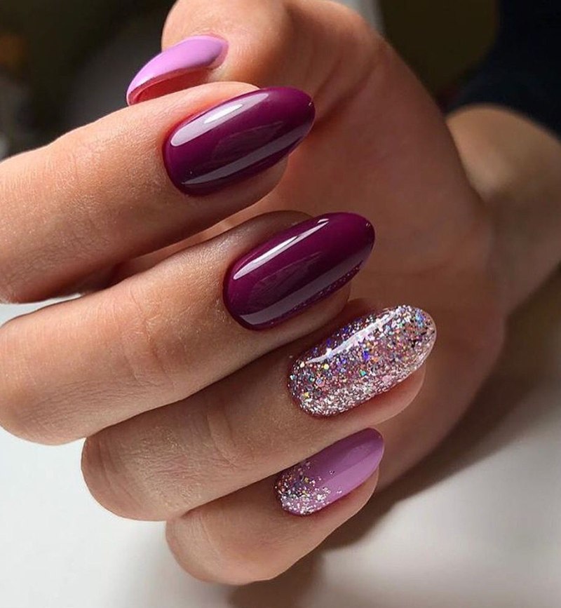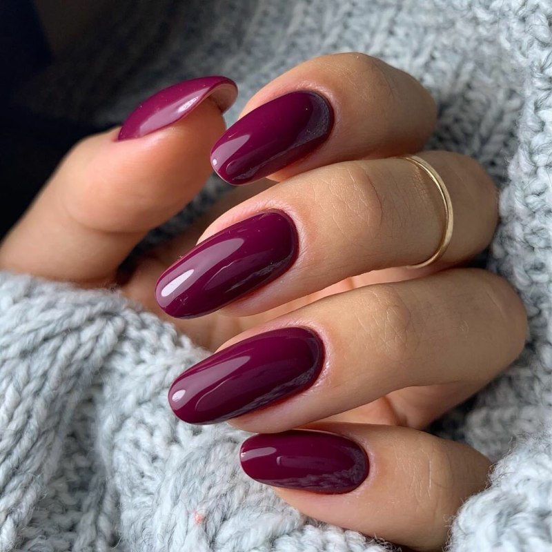 Малиновый маникюр на овальные ногти