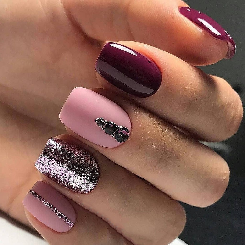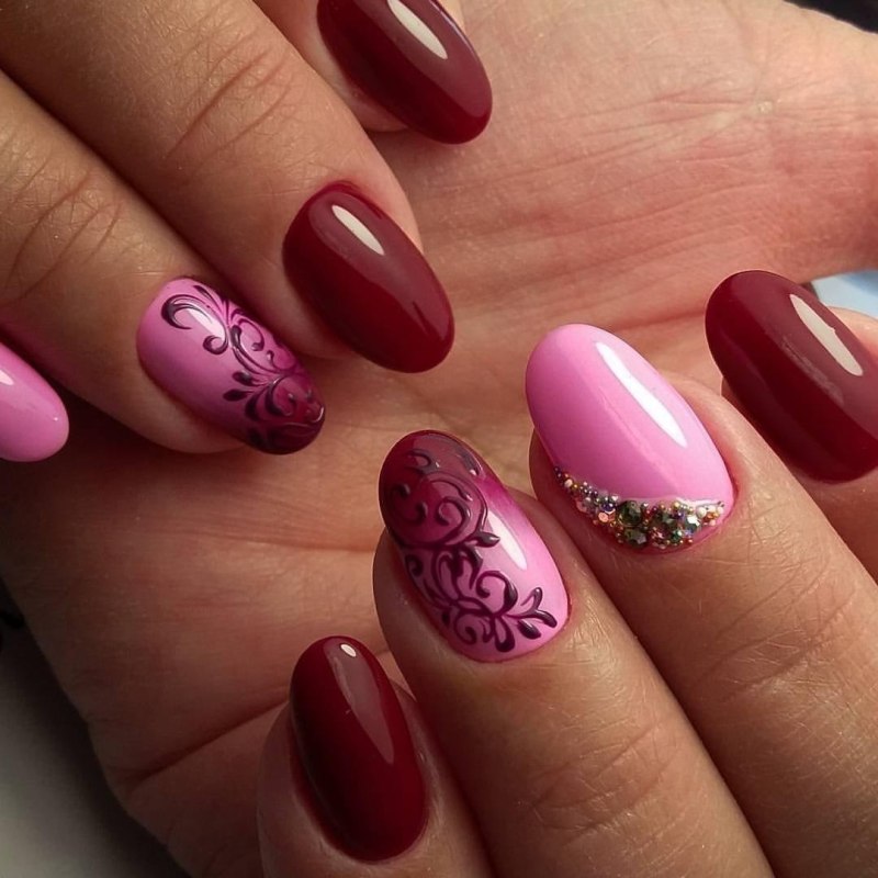 Маникюр в бордово розовых тонах
