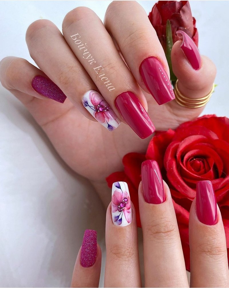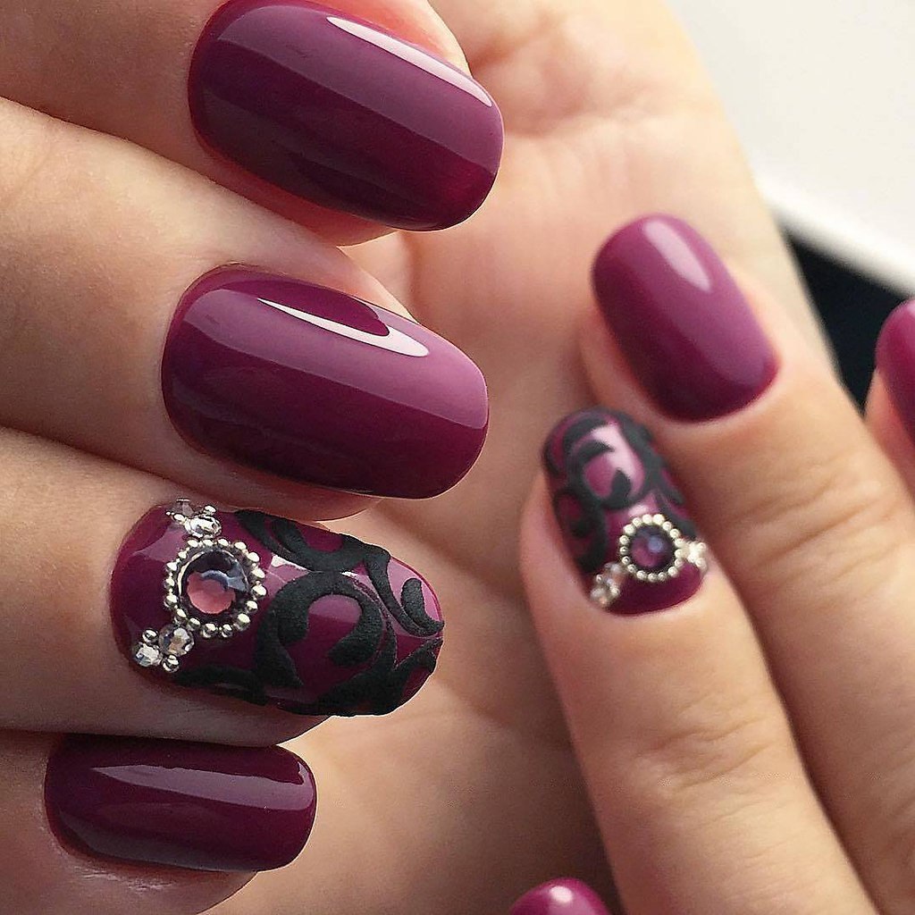 Маникюр малинового цвета