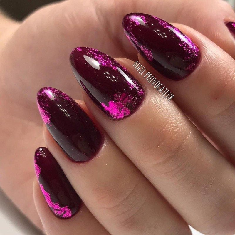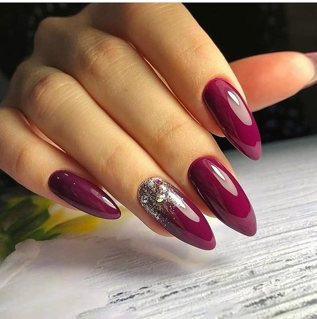 Бордовые ноготочки миндаль 2020