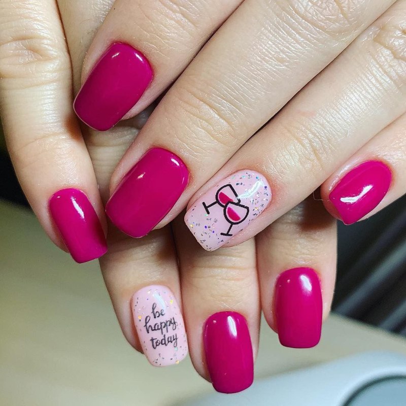 Розово малиновый маникюр