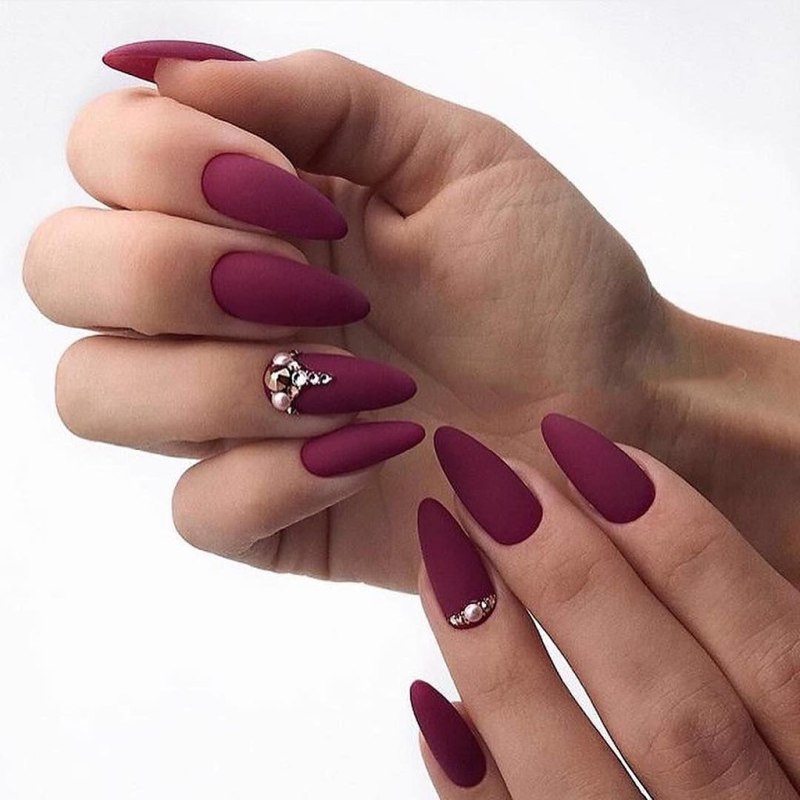 Бордовый матовый маникюр