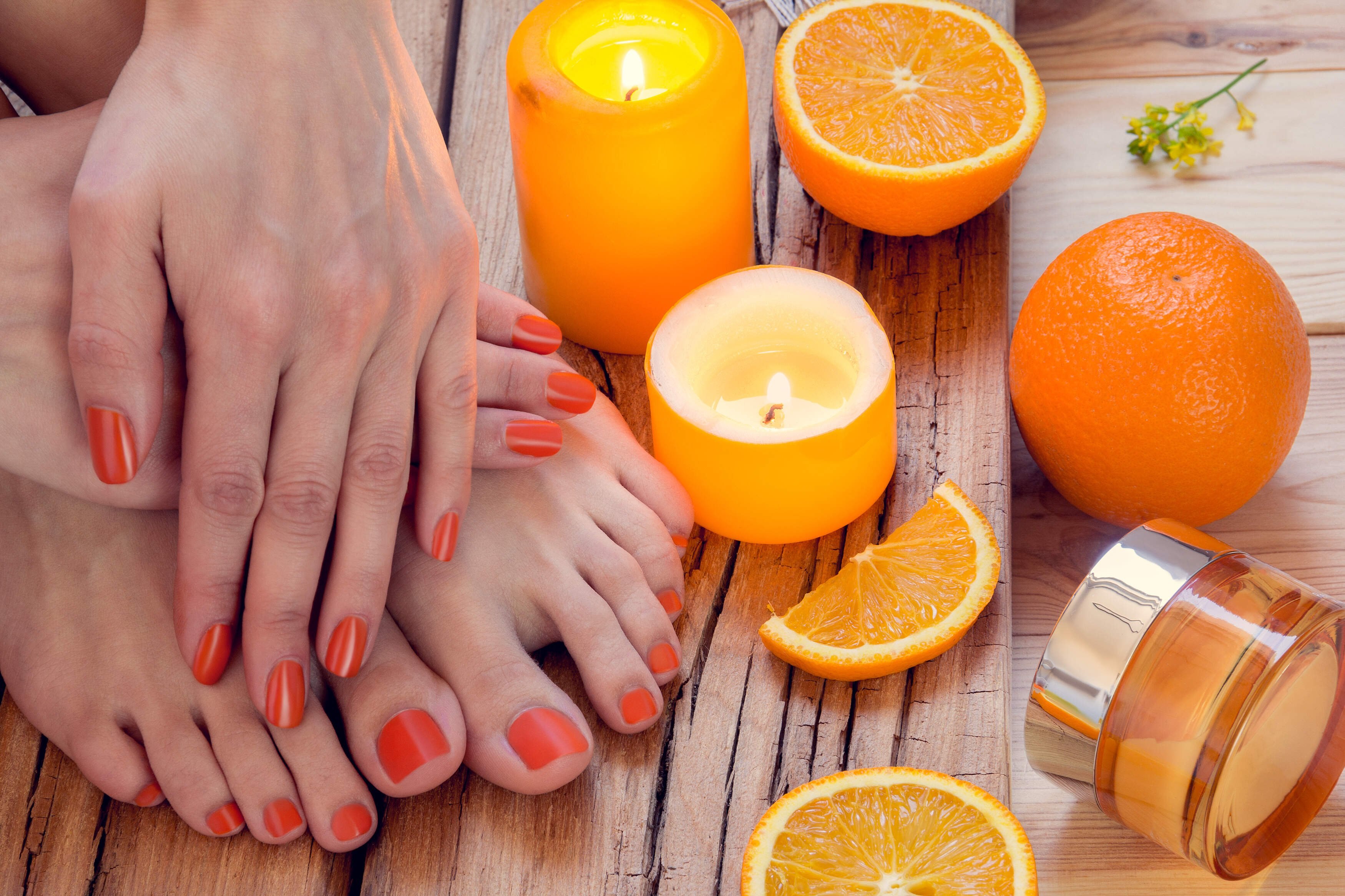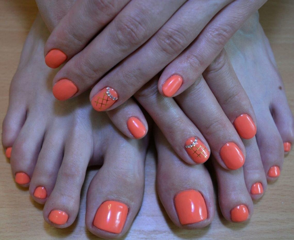 Оранжевый маникюр и педикюр