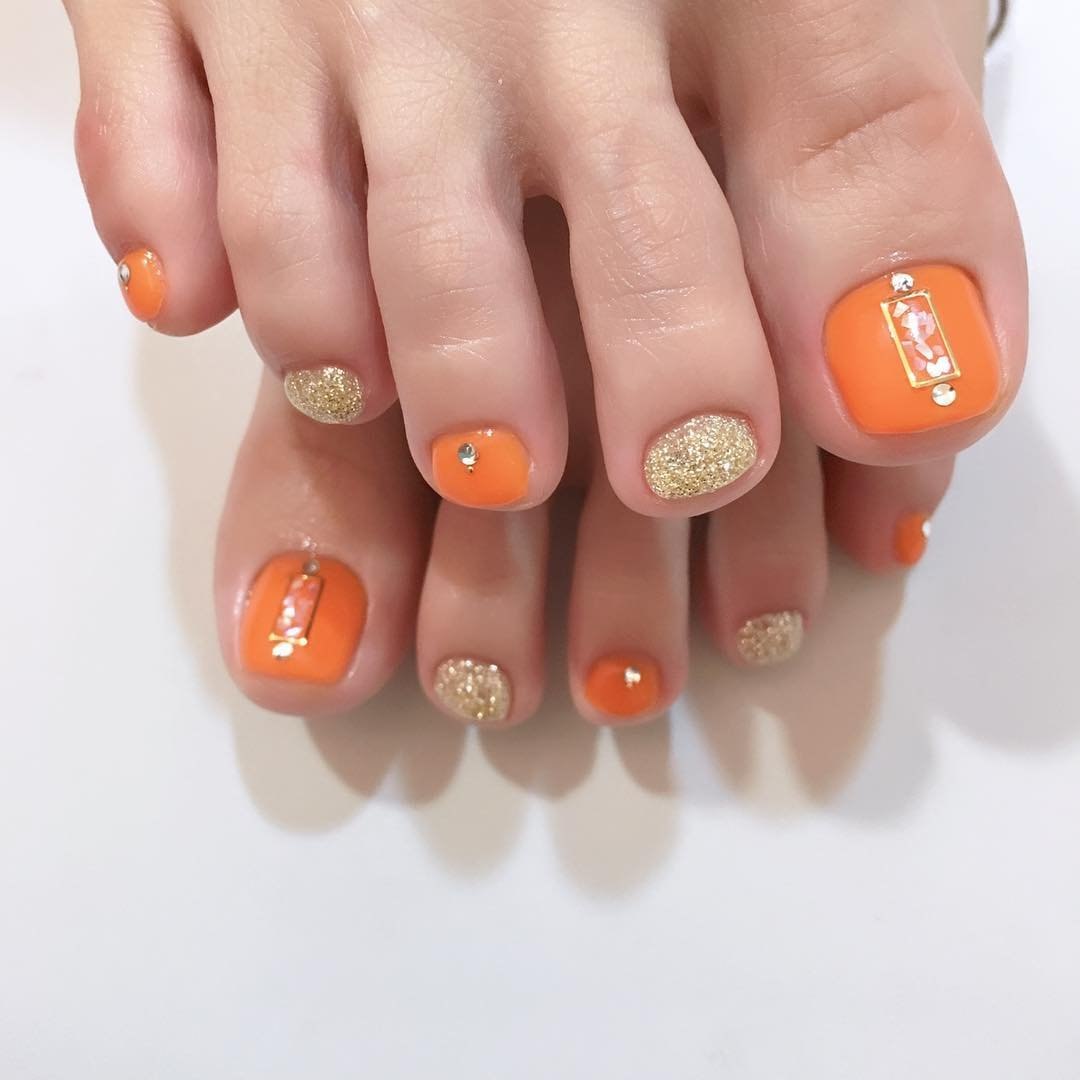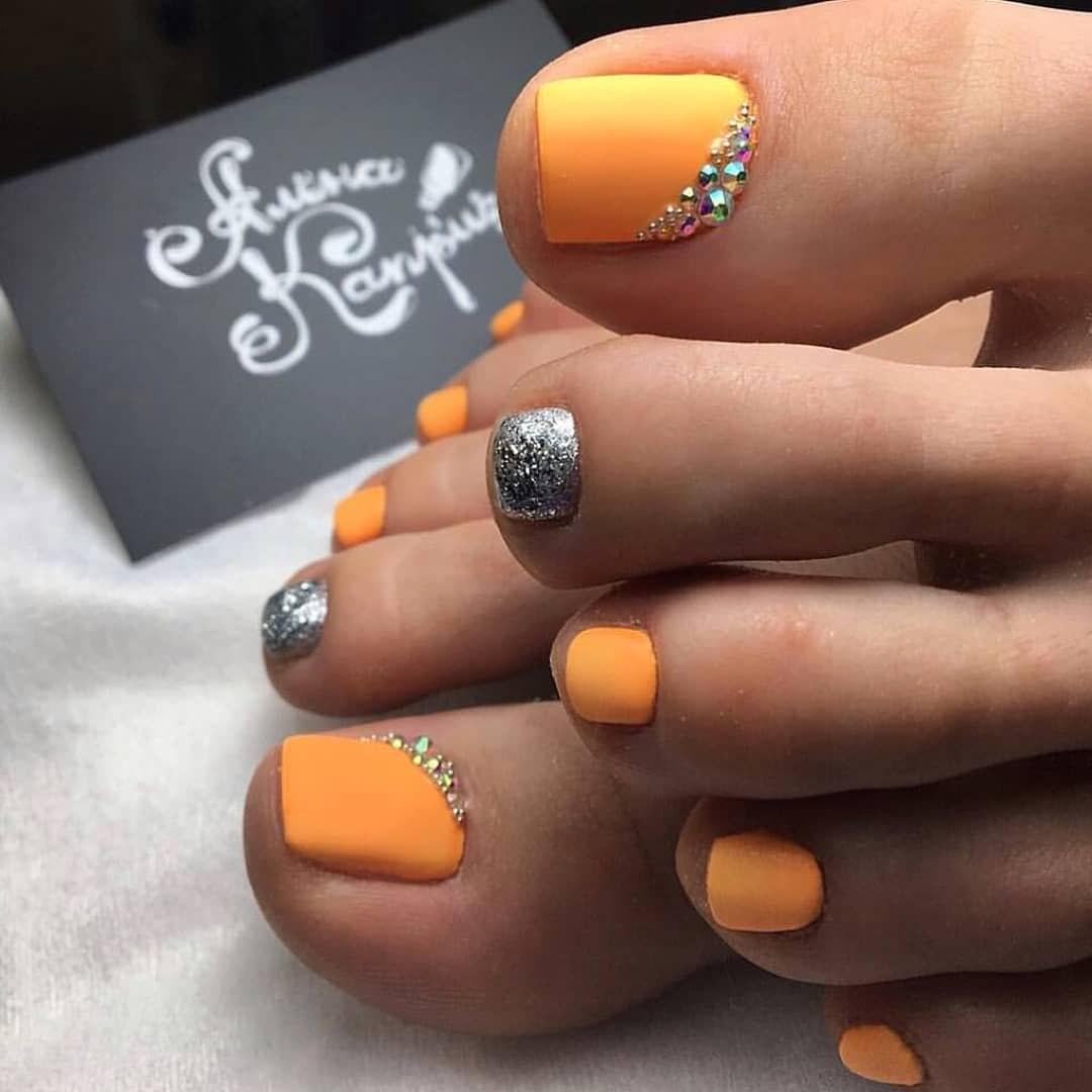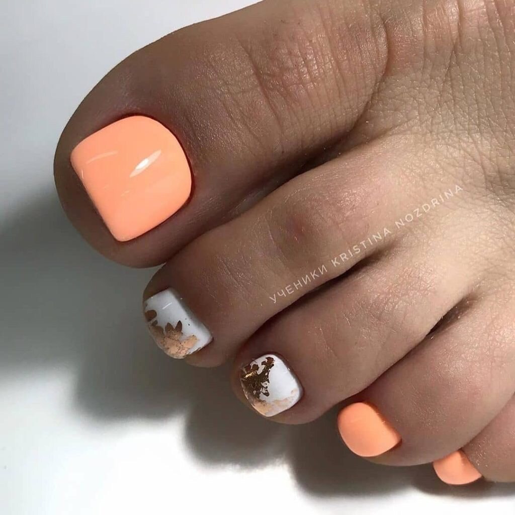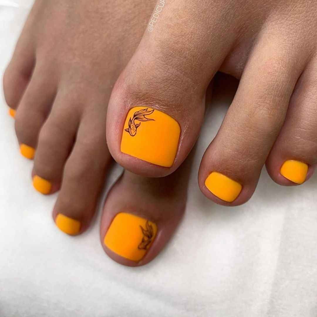 Педикюр оранжевого цвета