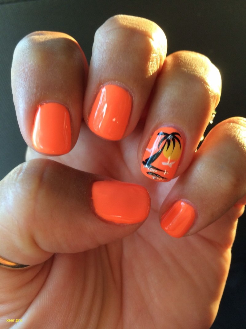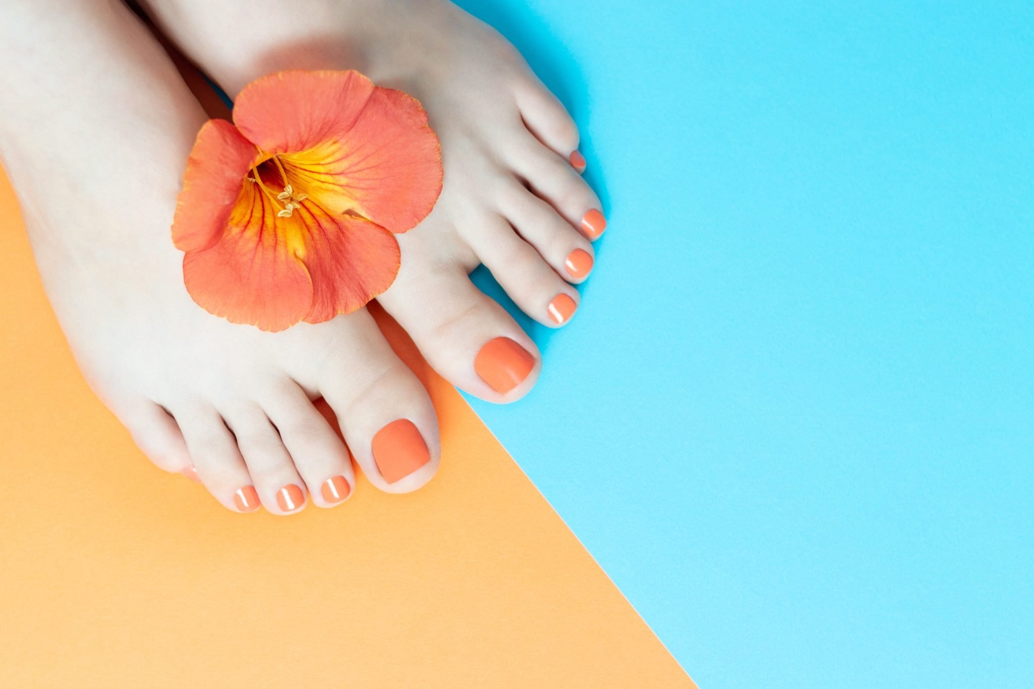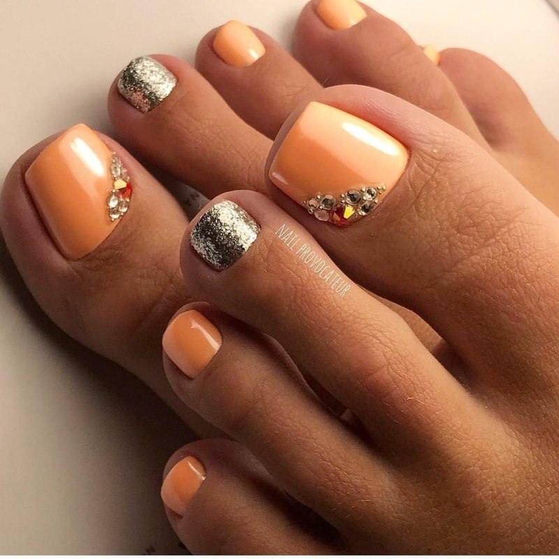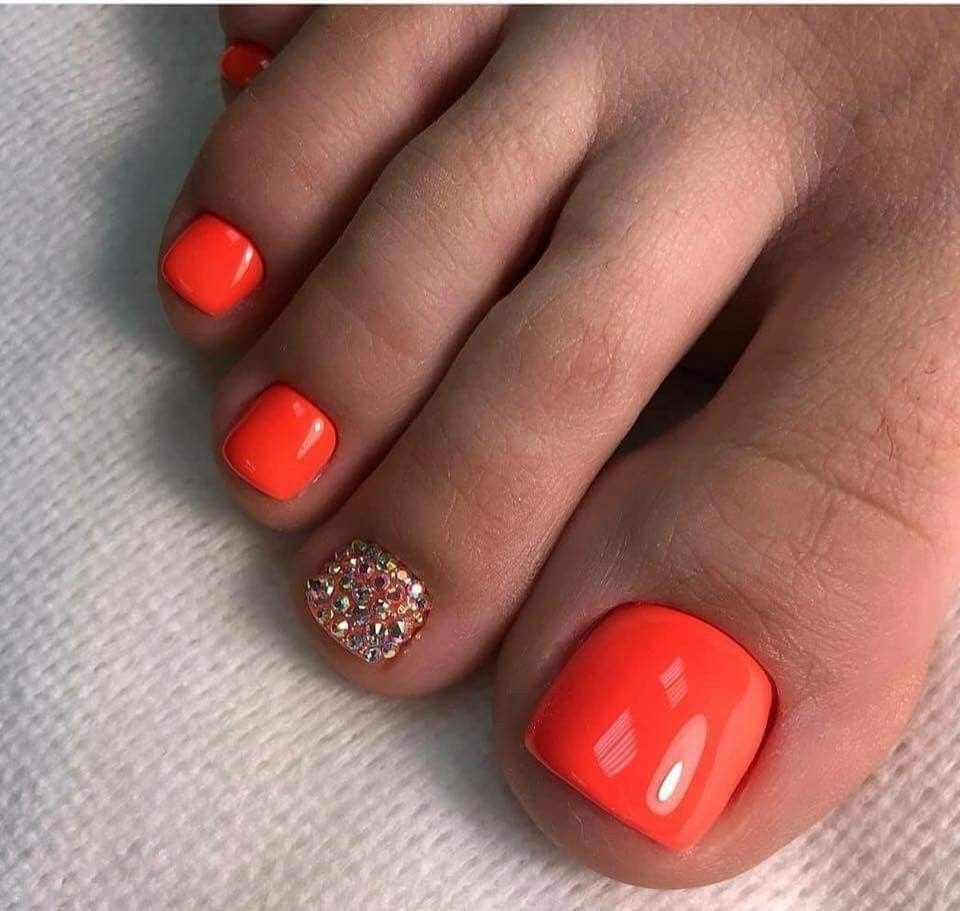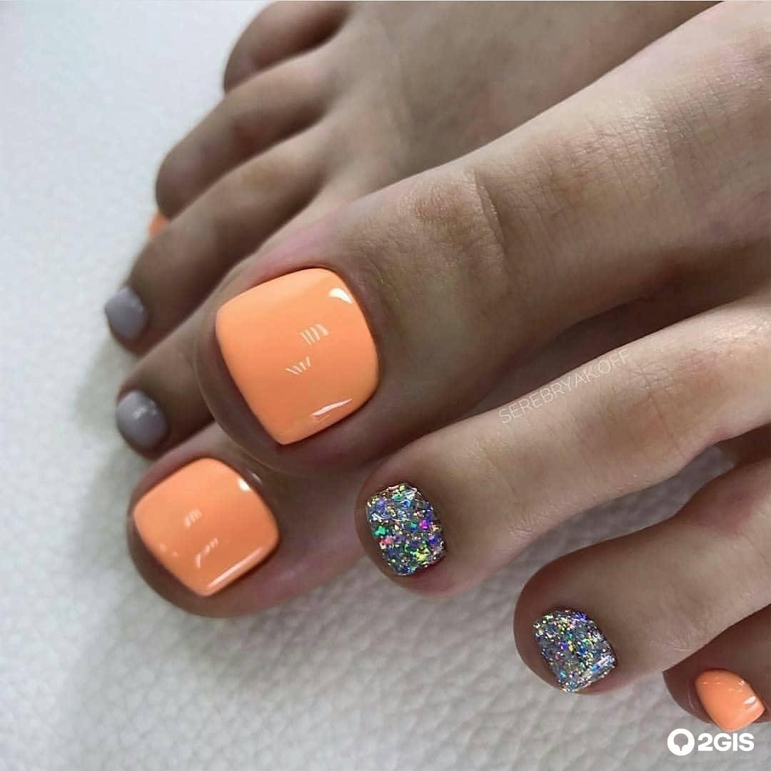 Педикюр оранжевого цвета