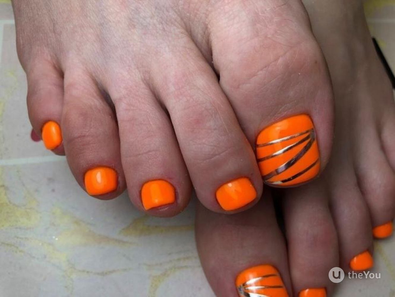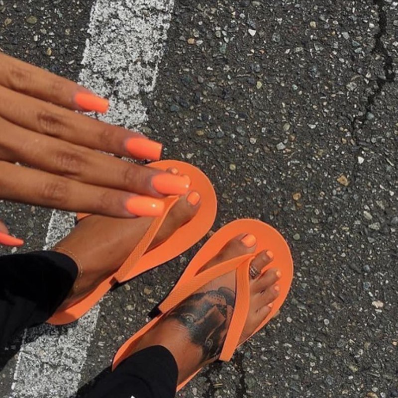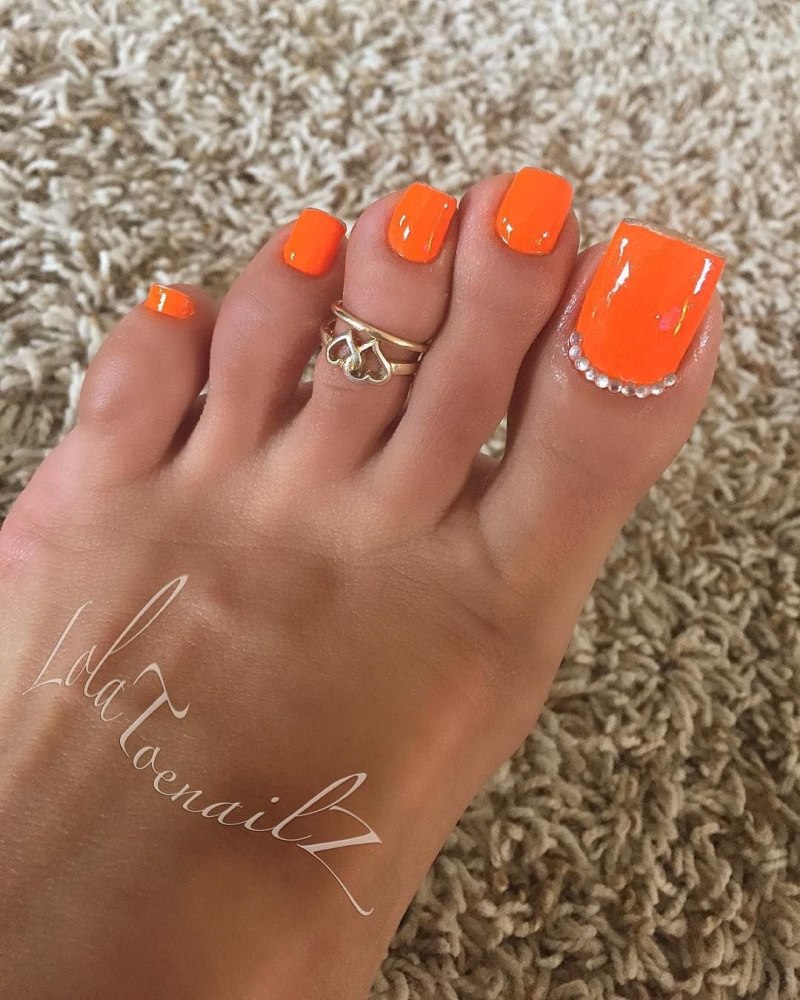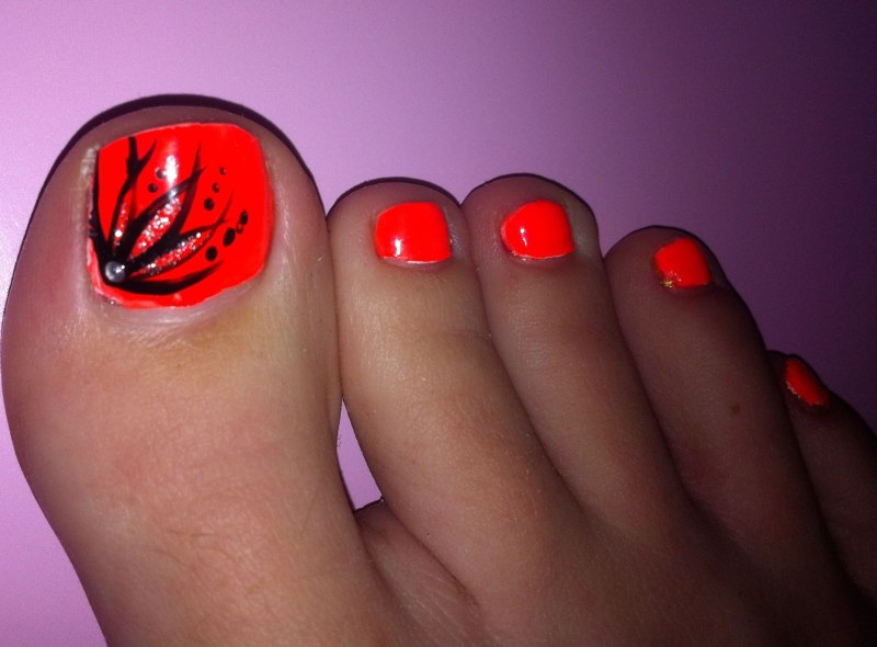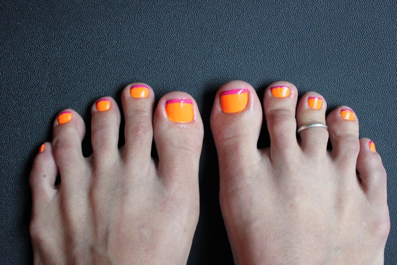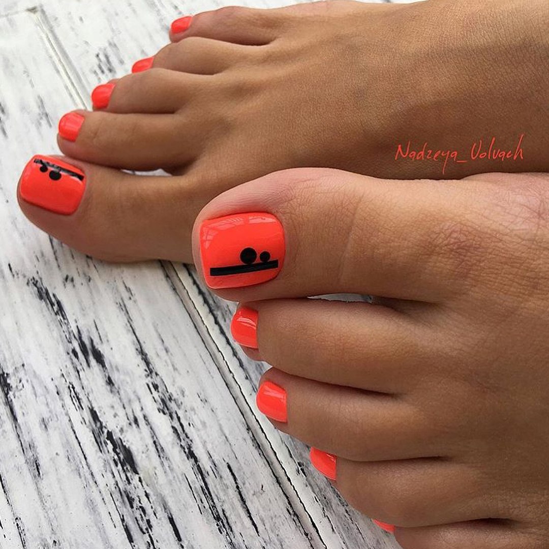 Педикюр неоновый оранжевый