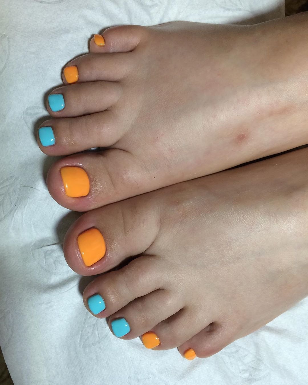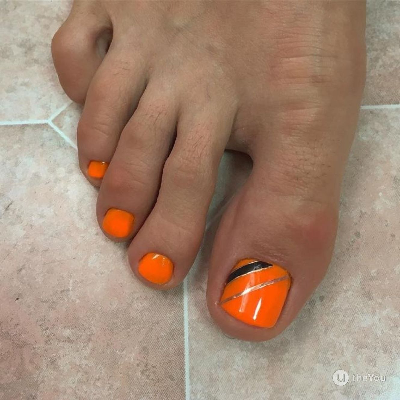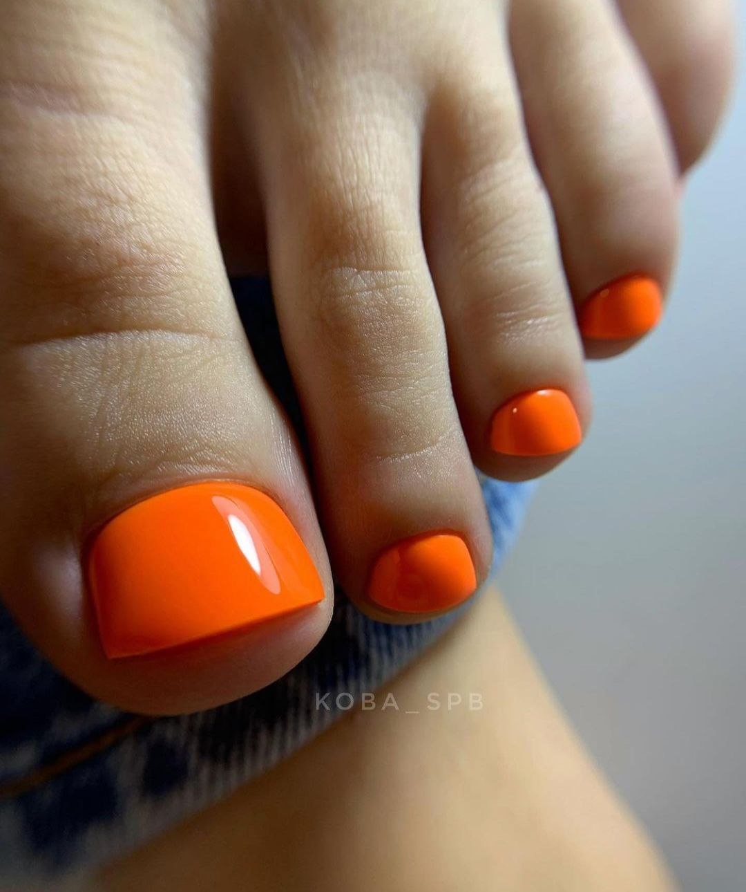 Педикюр неоновый оранжевый