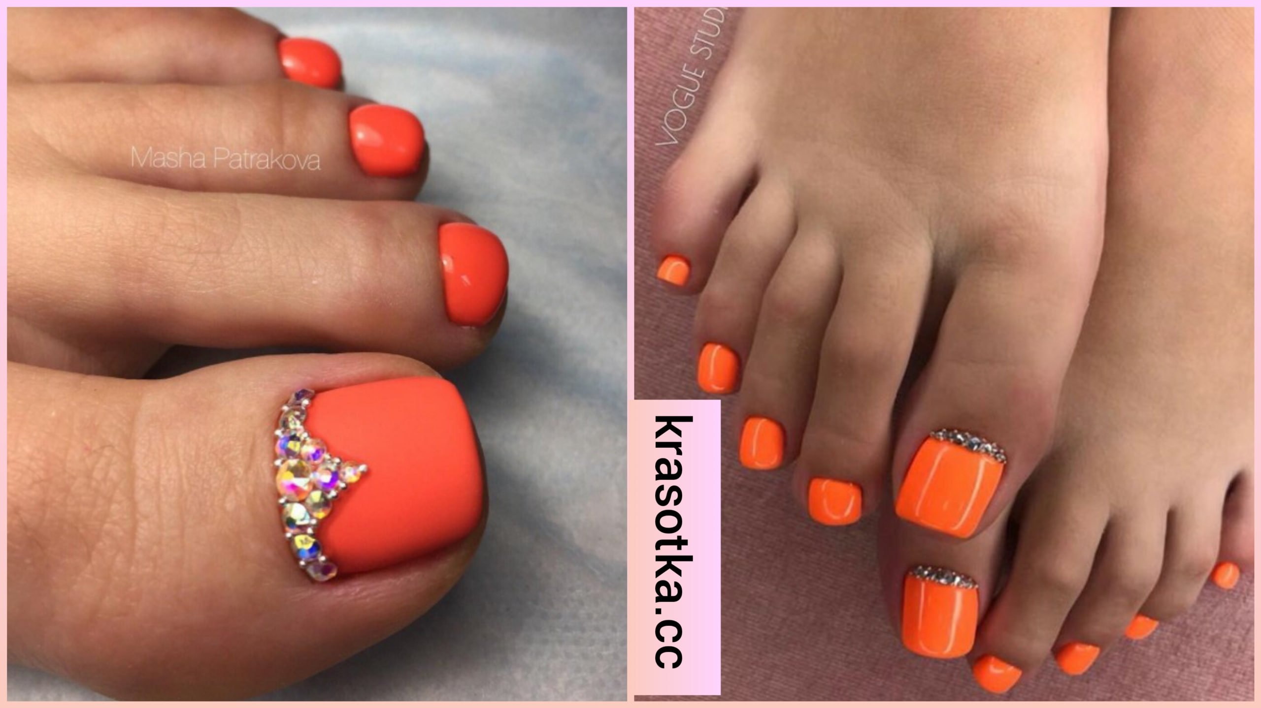 Педикюр оранжевый со стразами