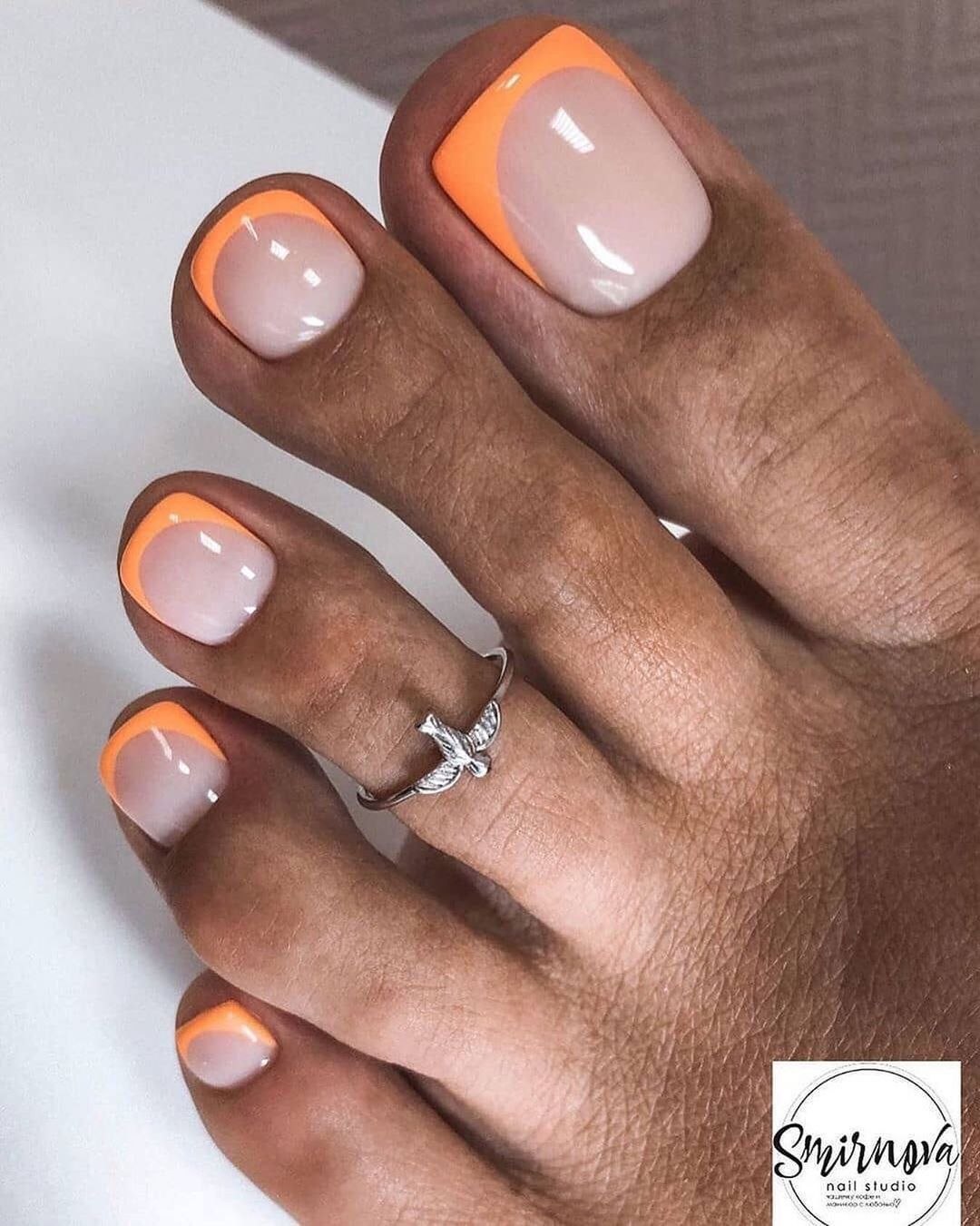 Педикюр оранжевый френч