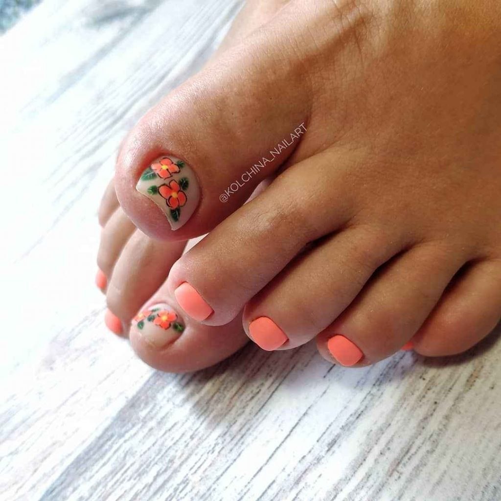 Педикюр кораллового цвета