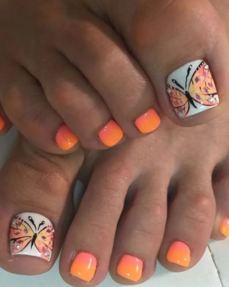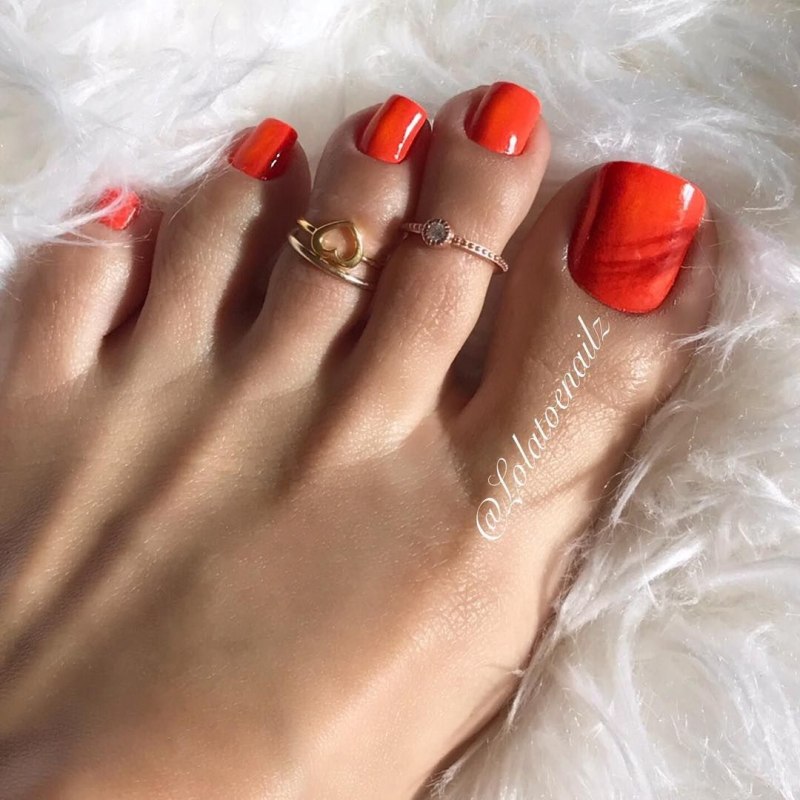 Оранжевый педикюр