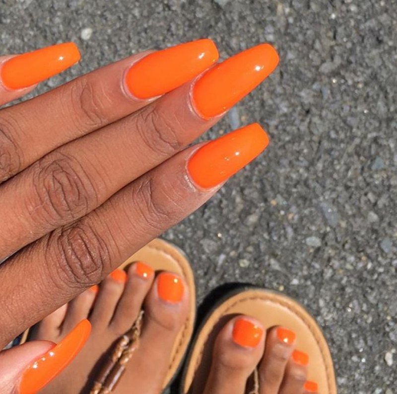 Маникюр и педикюр оранжевого цвета