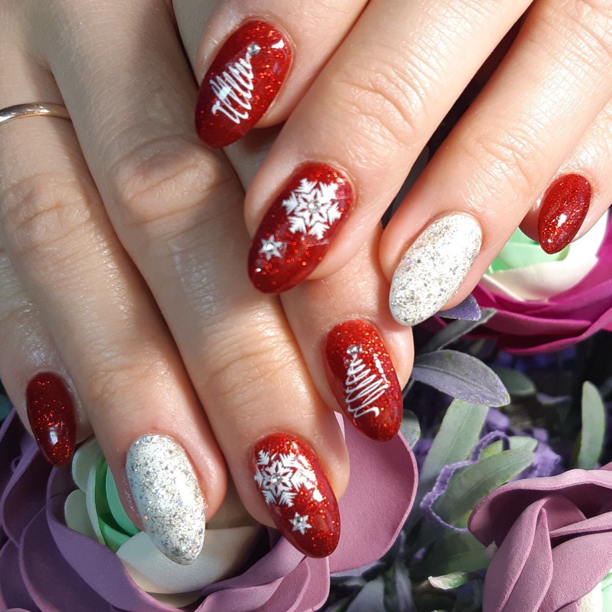 Красные праздничные ногти