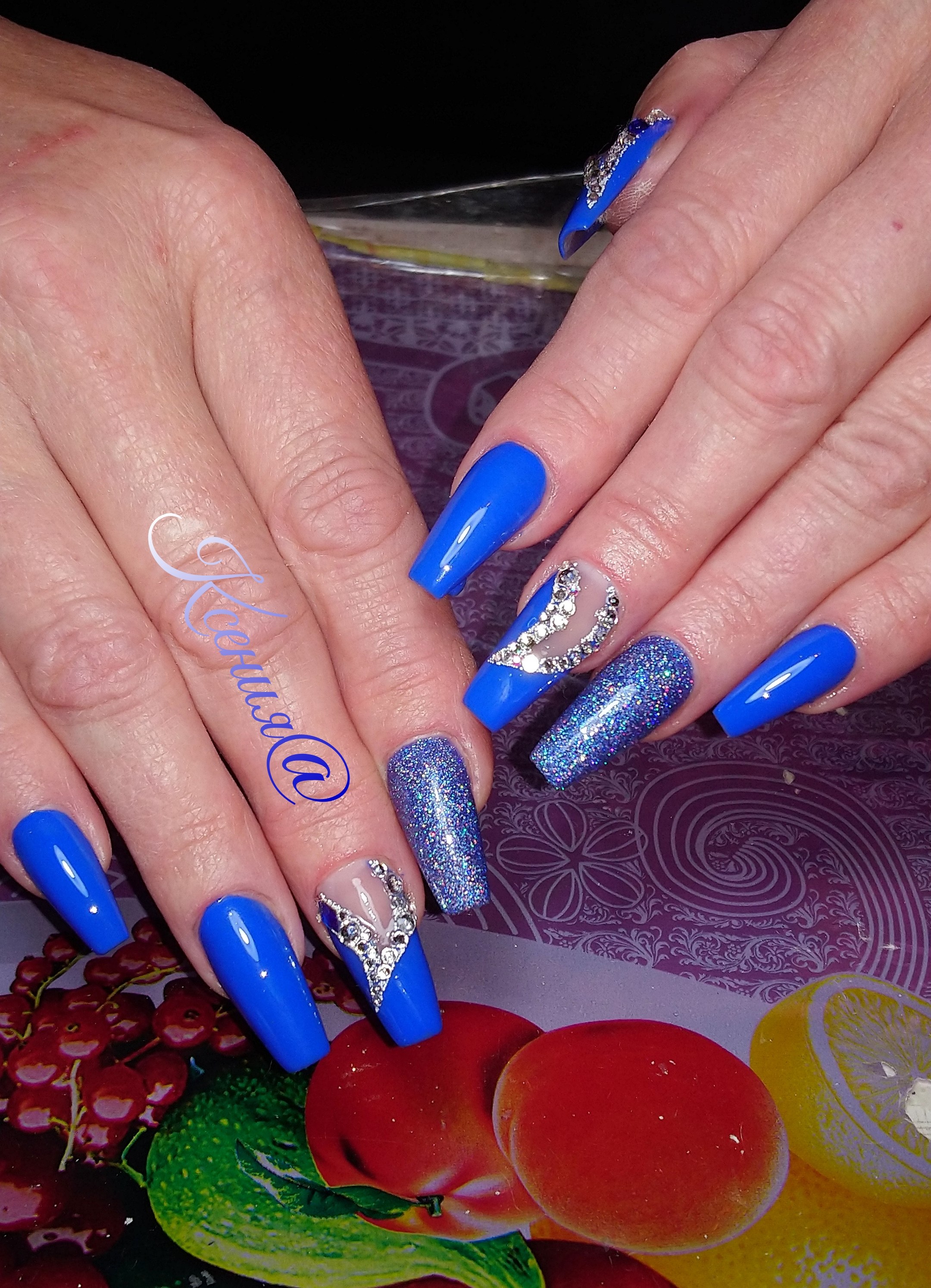 Маникюр праздничный под синее платье