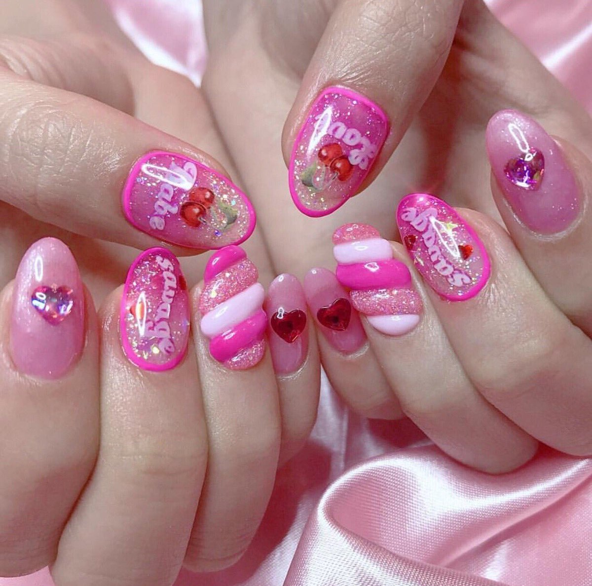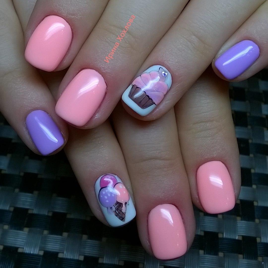 Розовый маникюр с пироженками