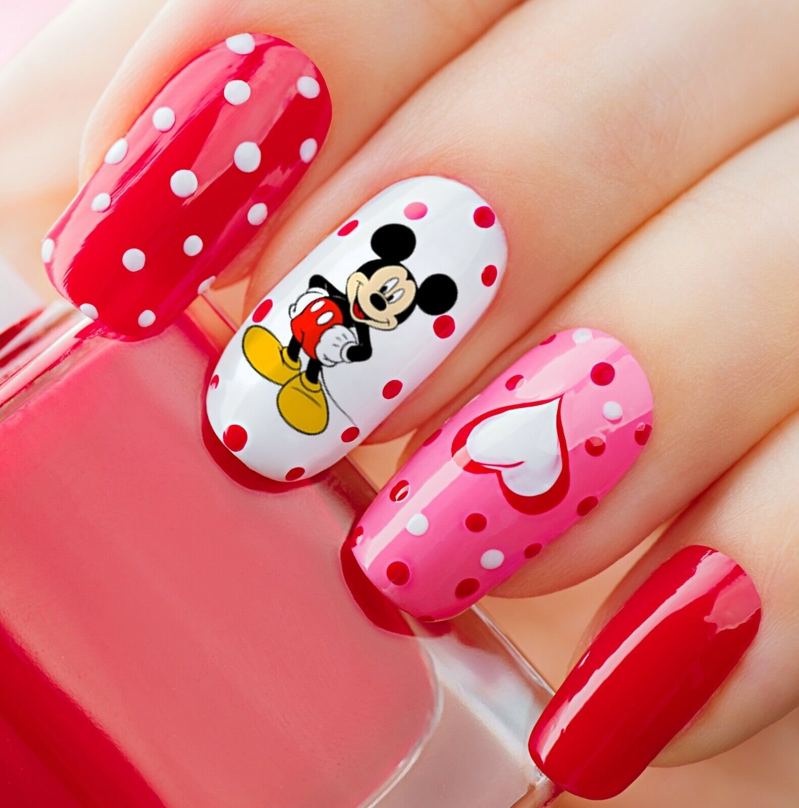 Яркий маникюр с сердечками