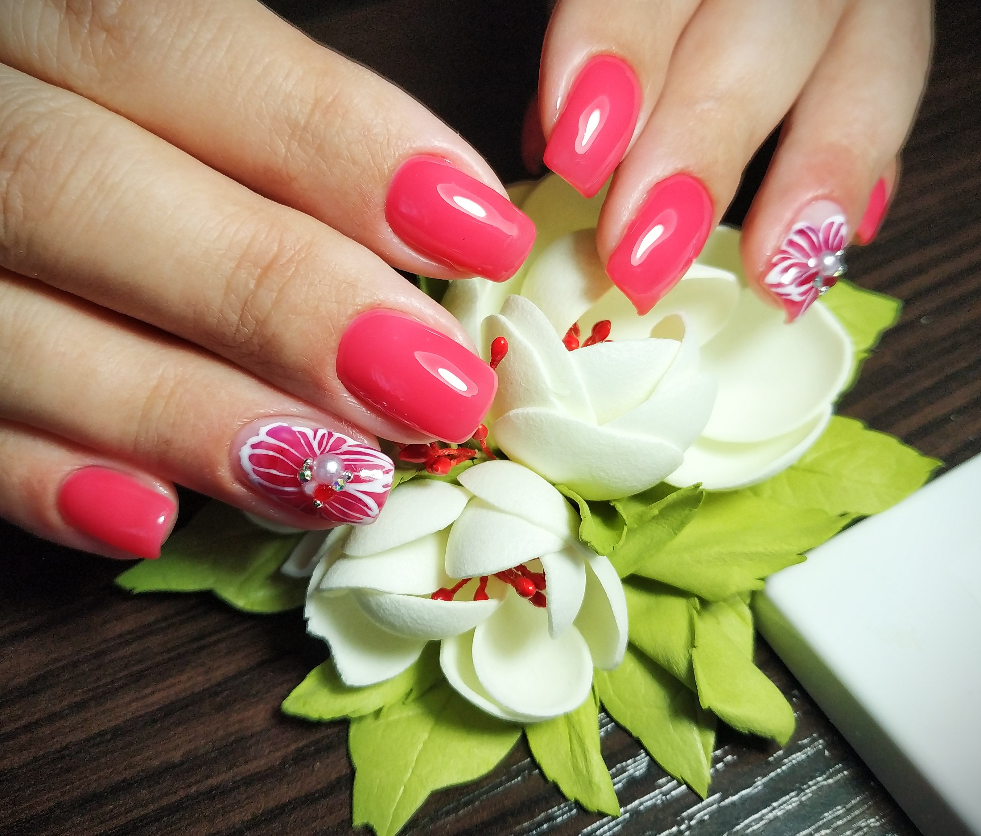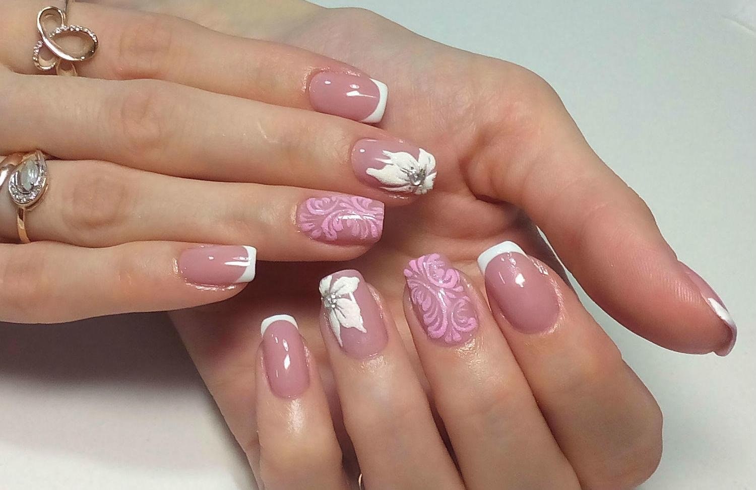 Маникюр на розовом фоне