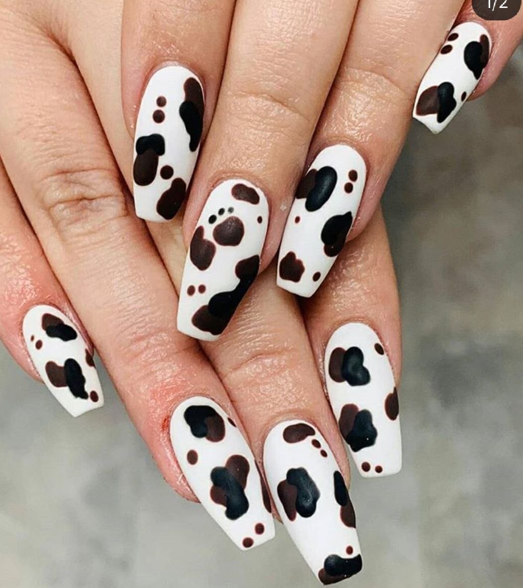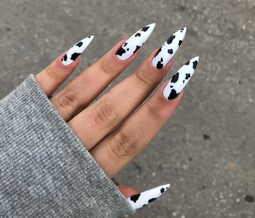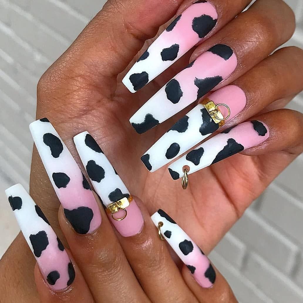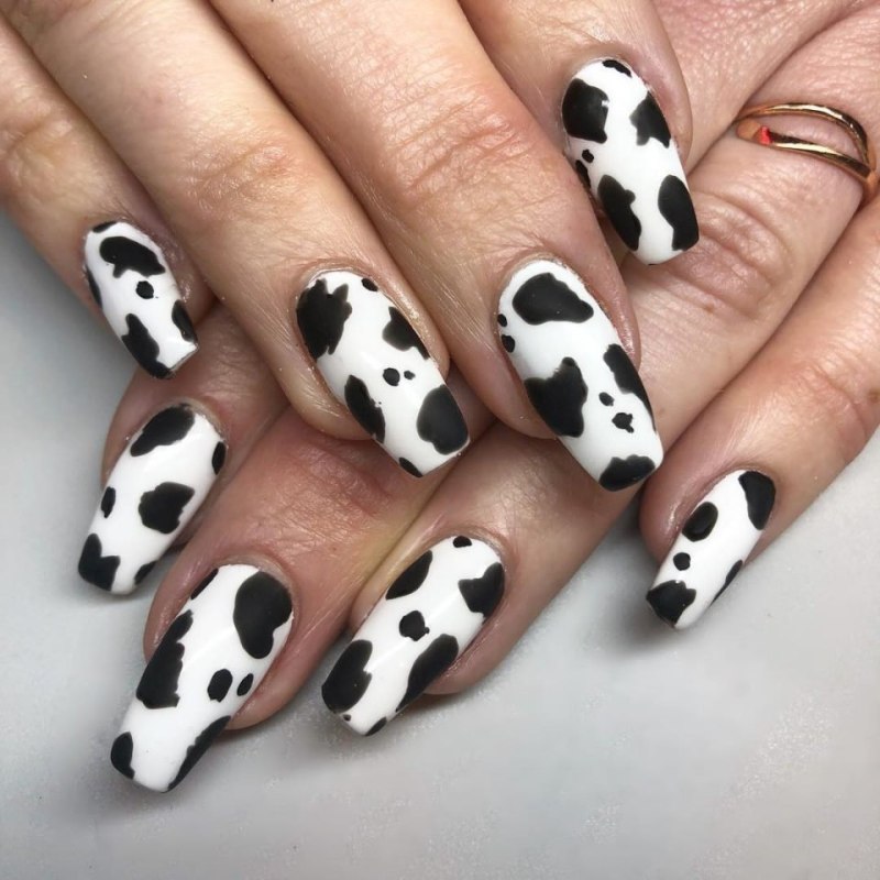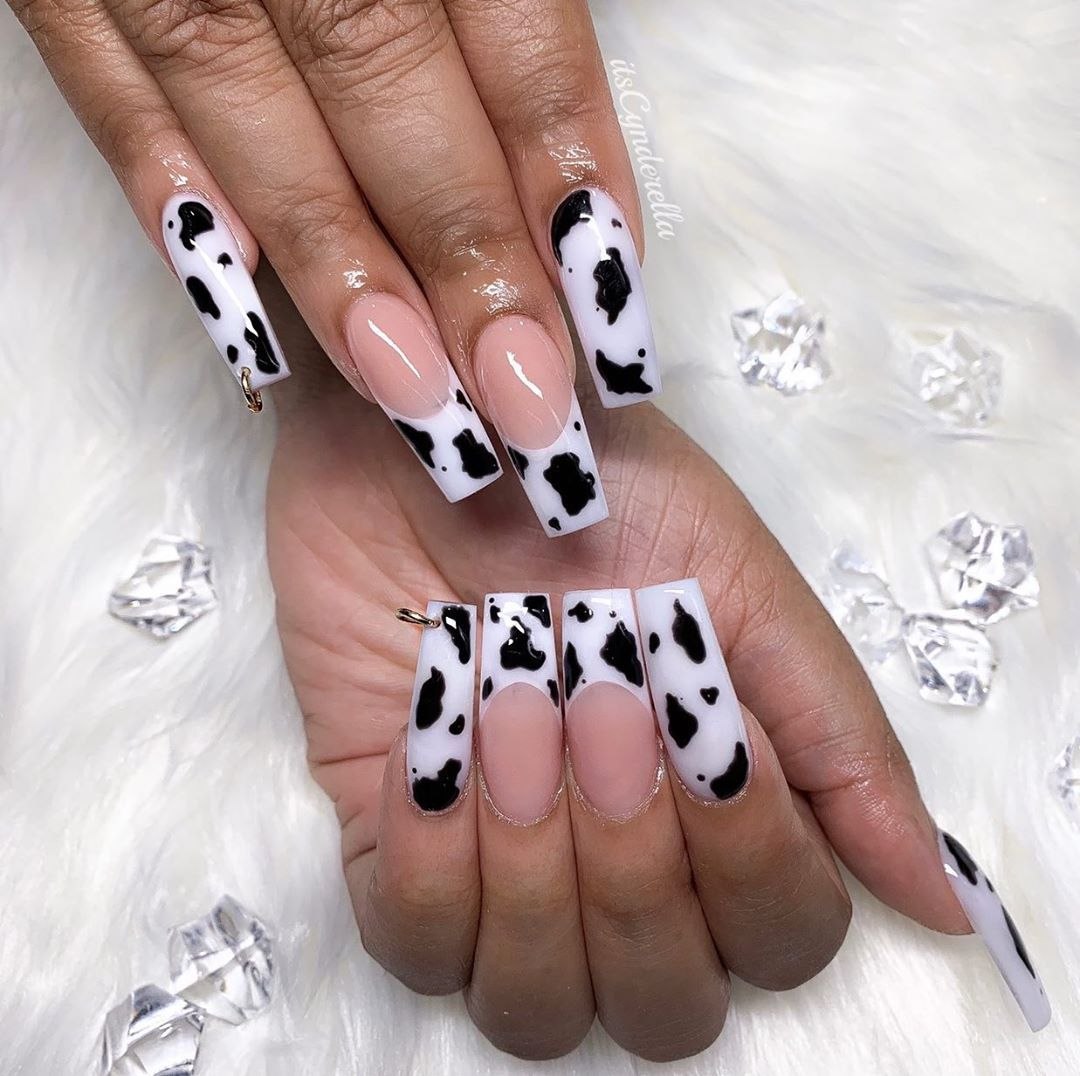 Маникюр с коровьим принтом на длинные ногти