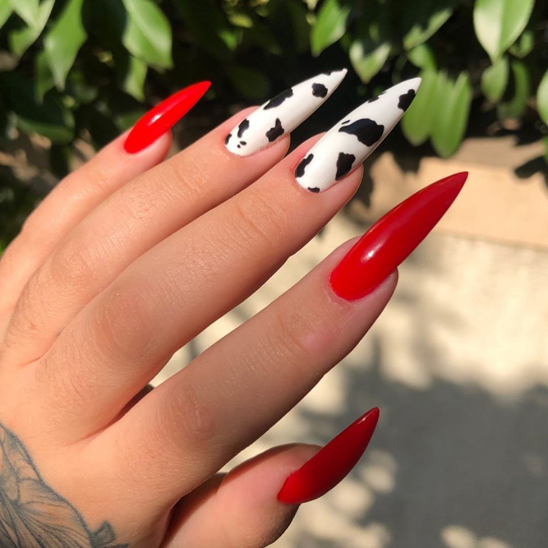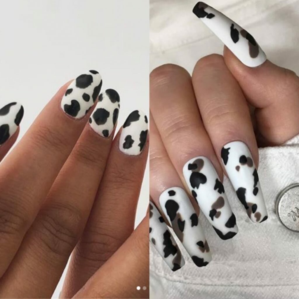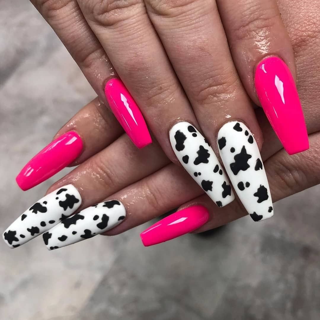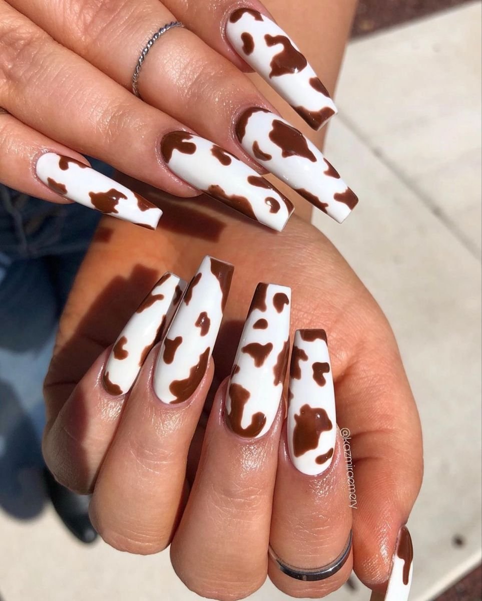 Маникюр с коровьим принтом на длинные ногти