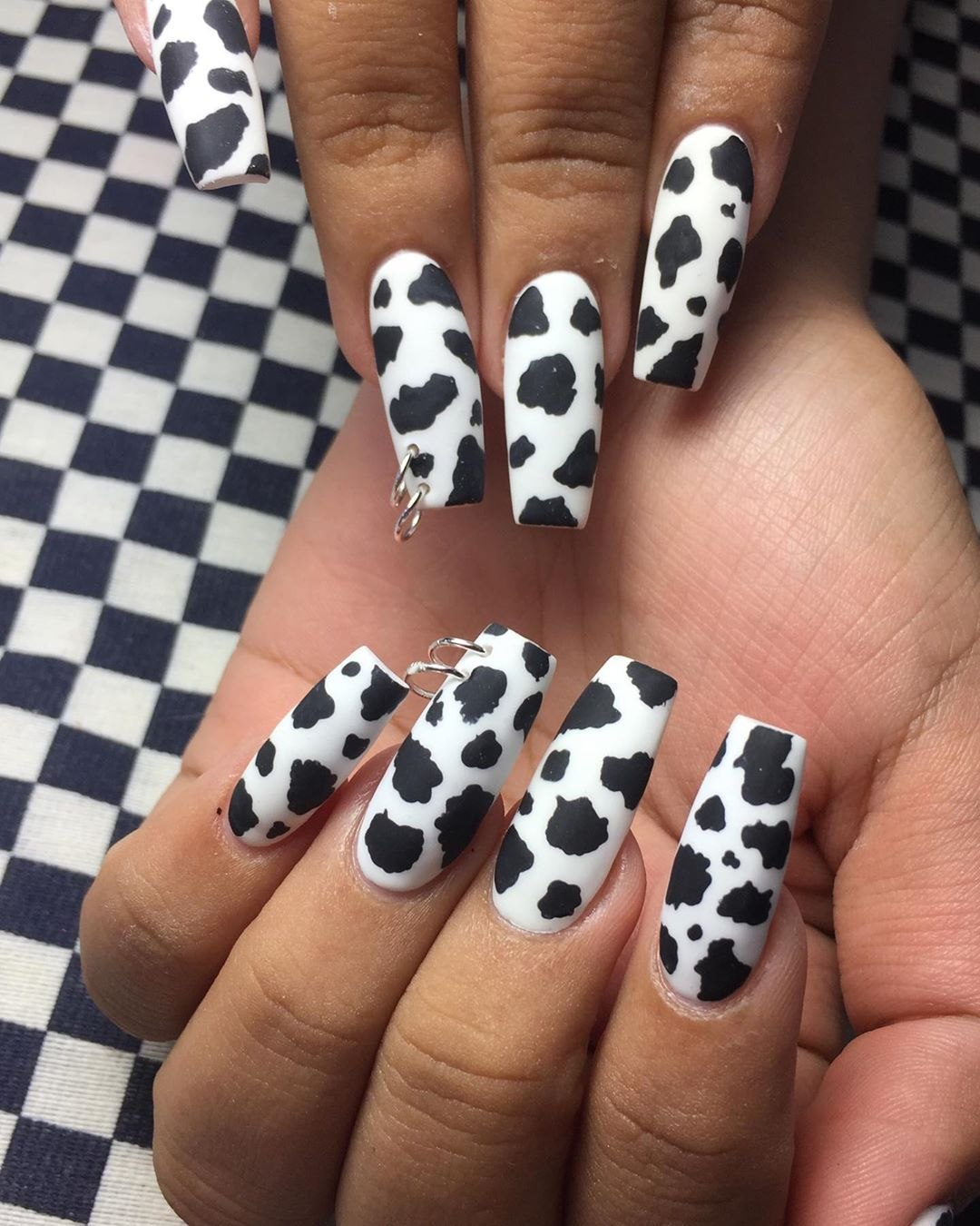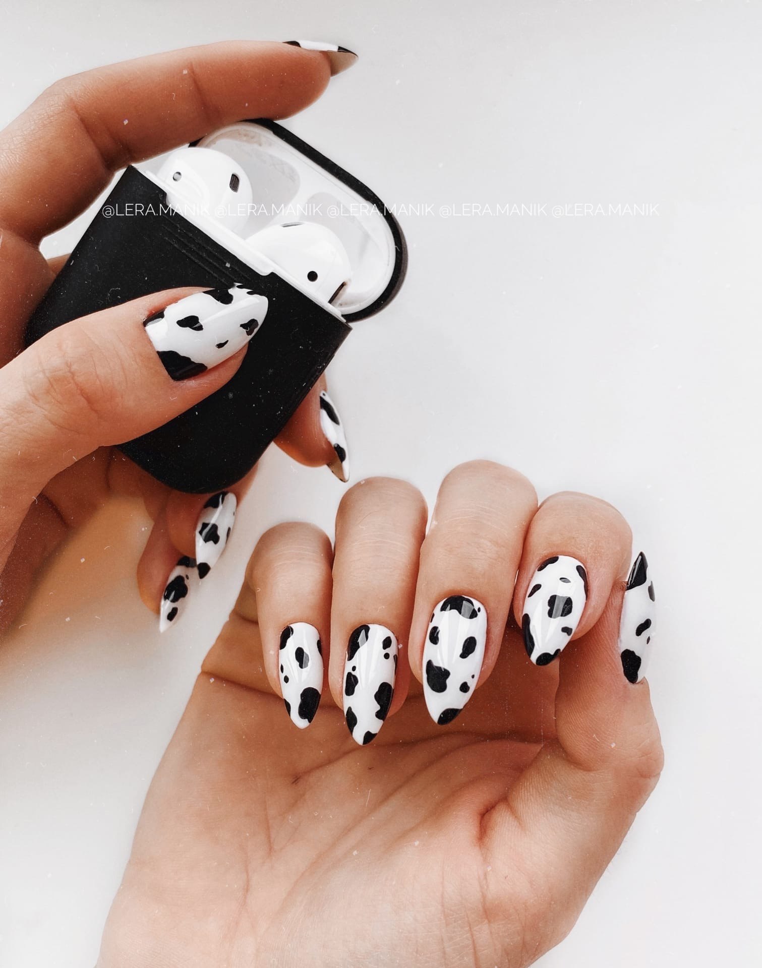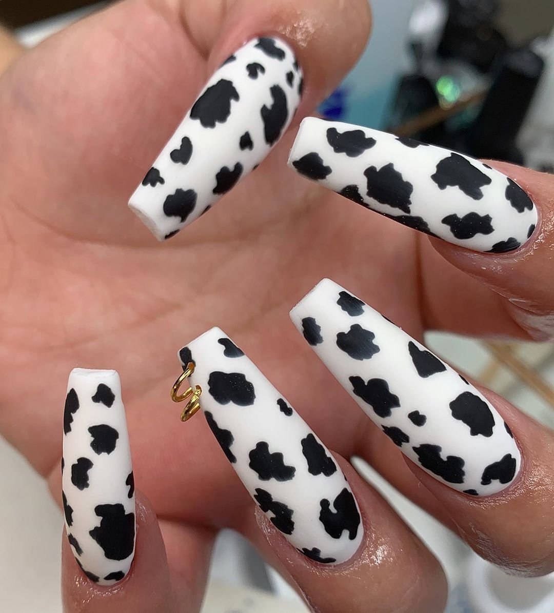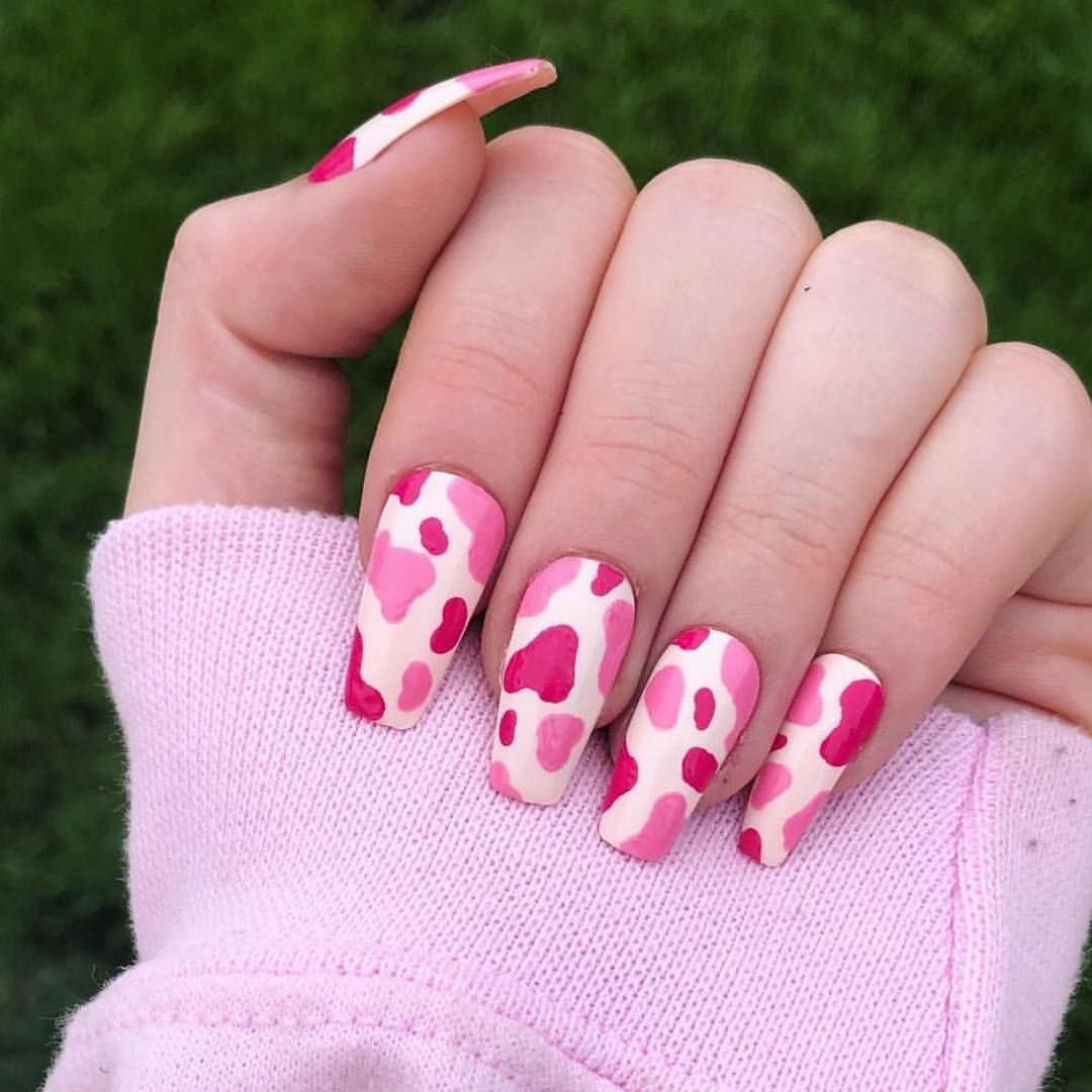 Маникюр с коровьим принтом на длинные ногти