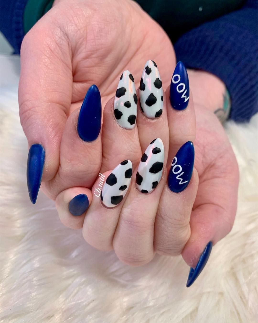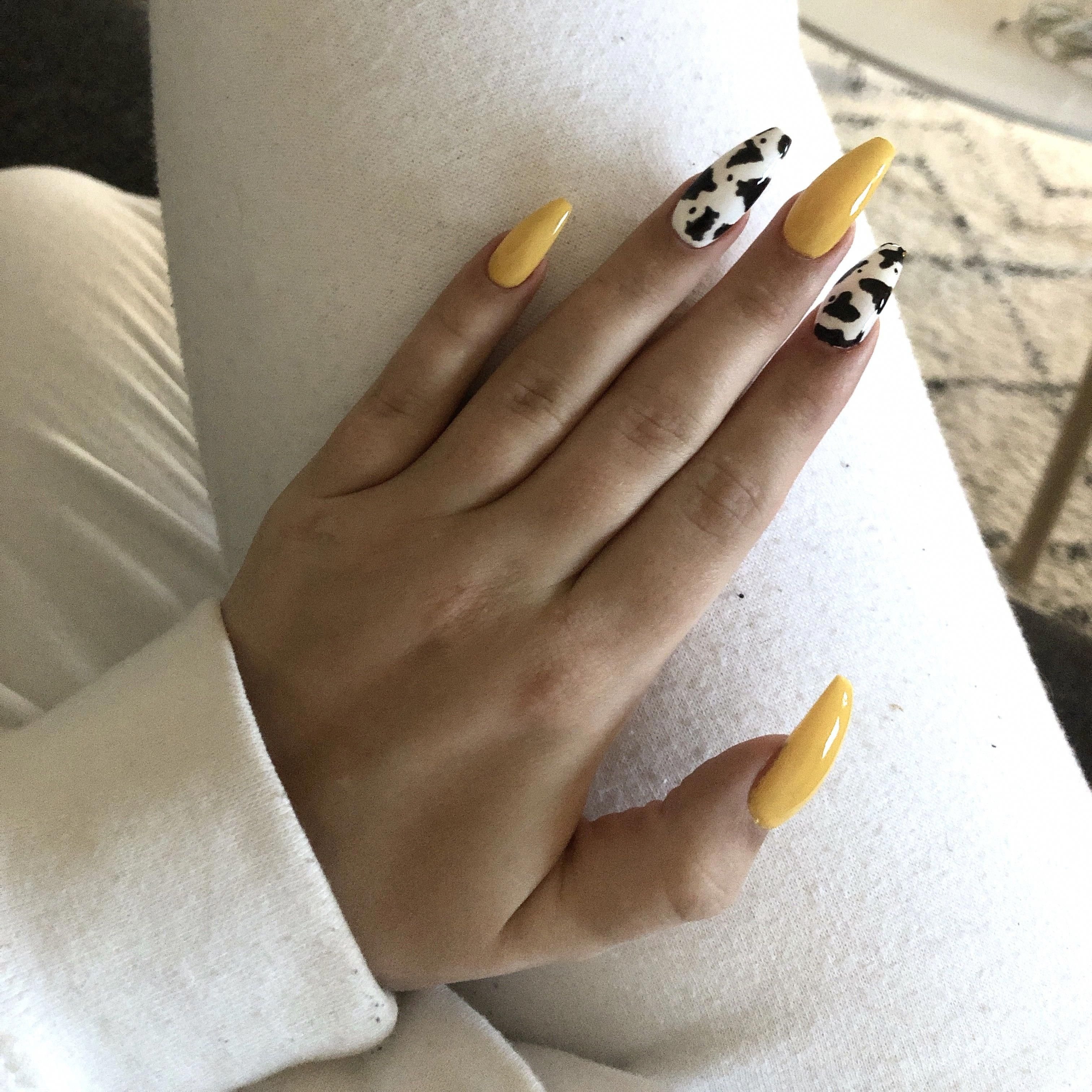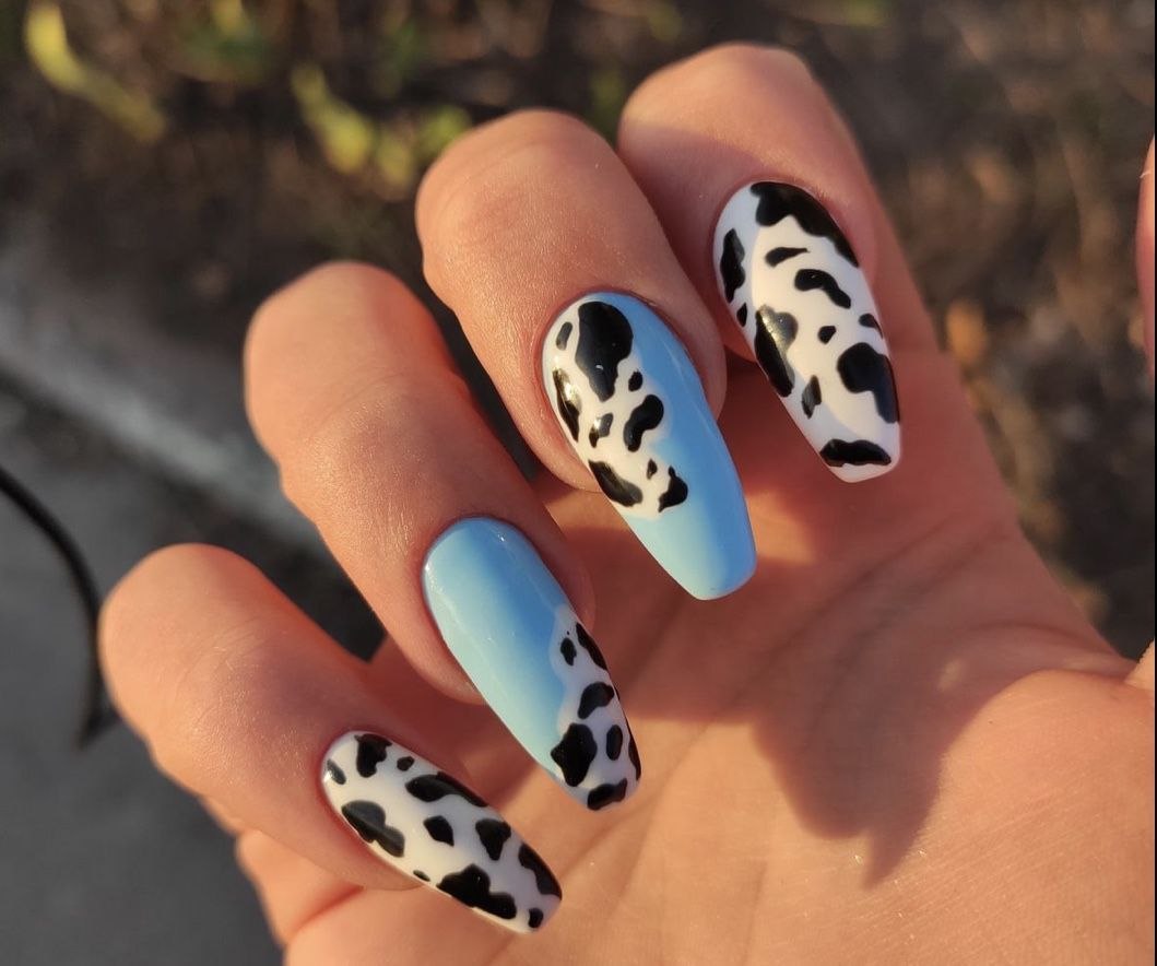 Ногти с коровьим принтом длинные