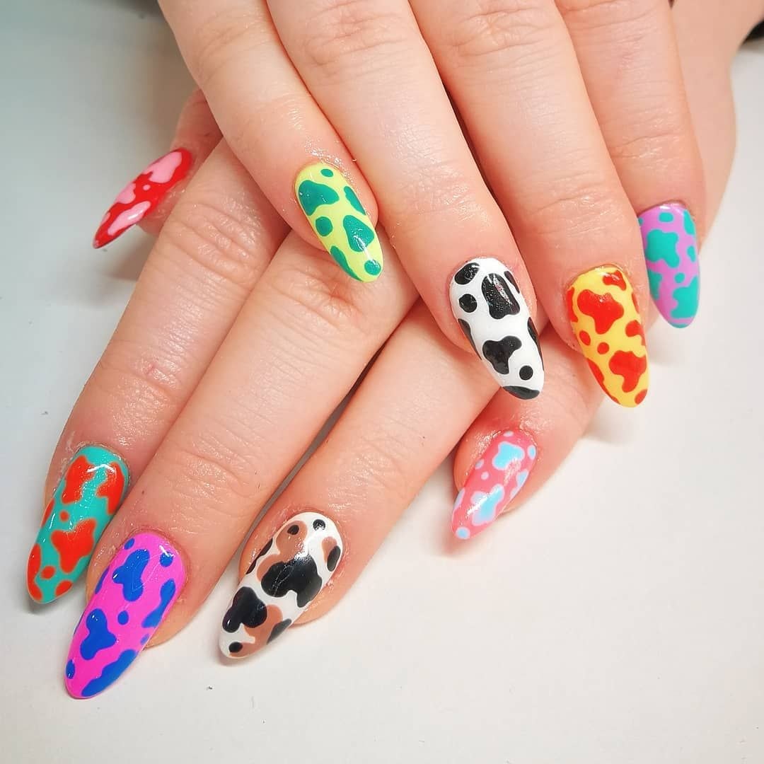 Яркий маникюр с коровьим принтом