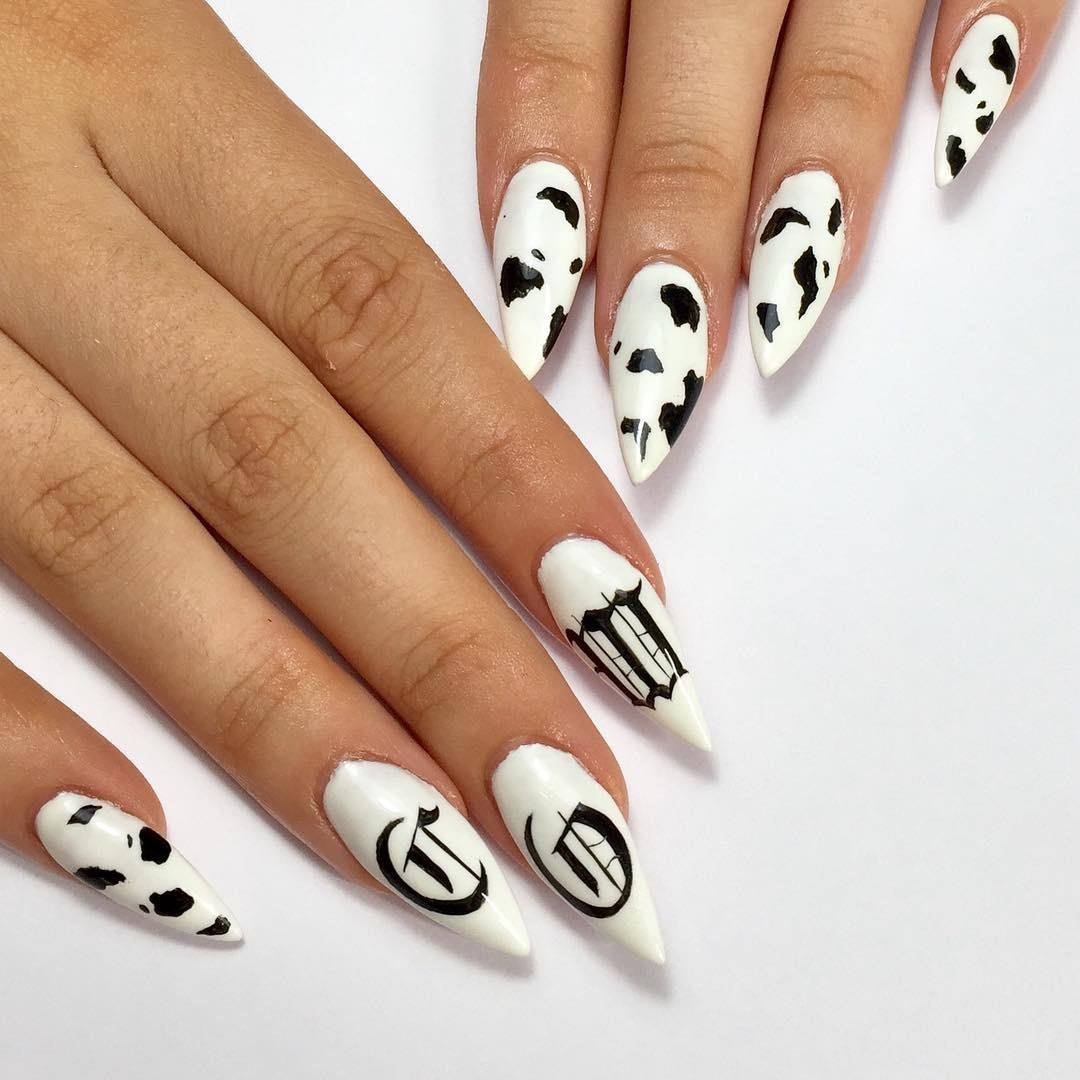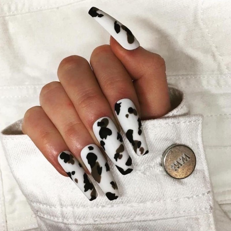 Маникюр с пятнами коровы на длинные ногти