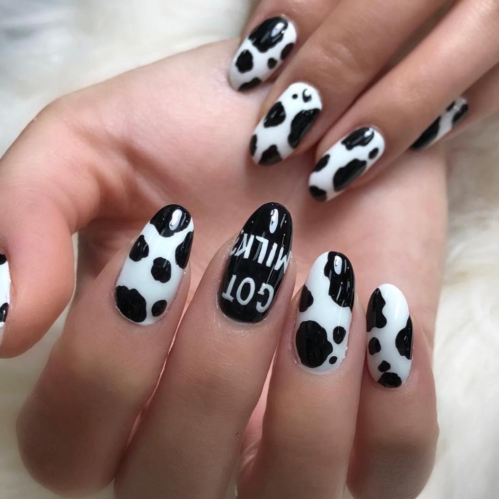 Ногти с расцветкой коровы