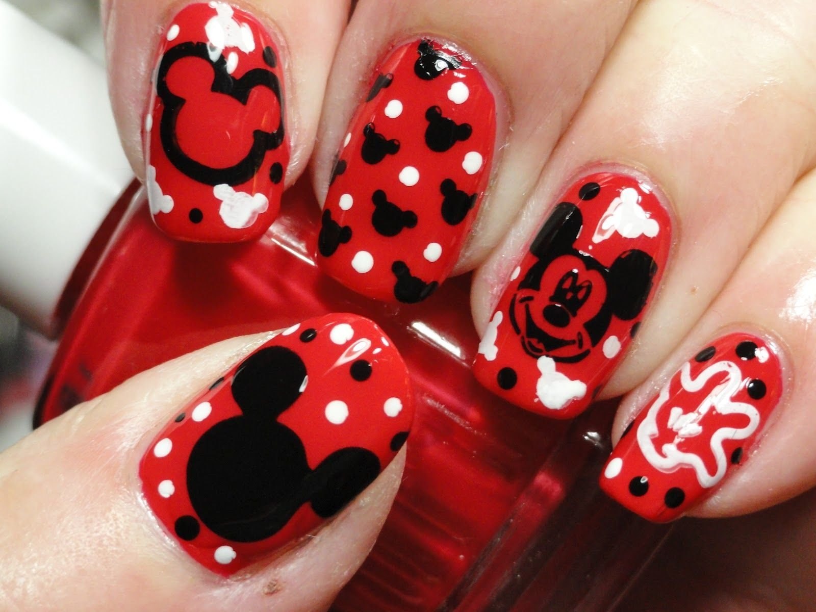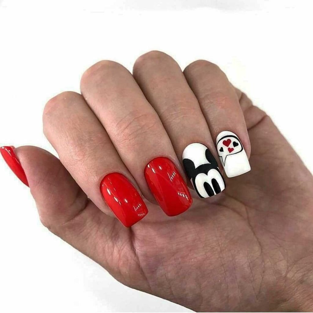 Маникюр Микки Маус красный