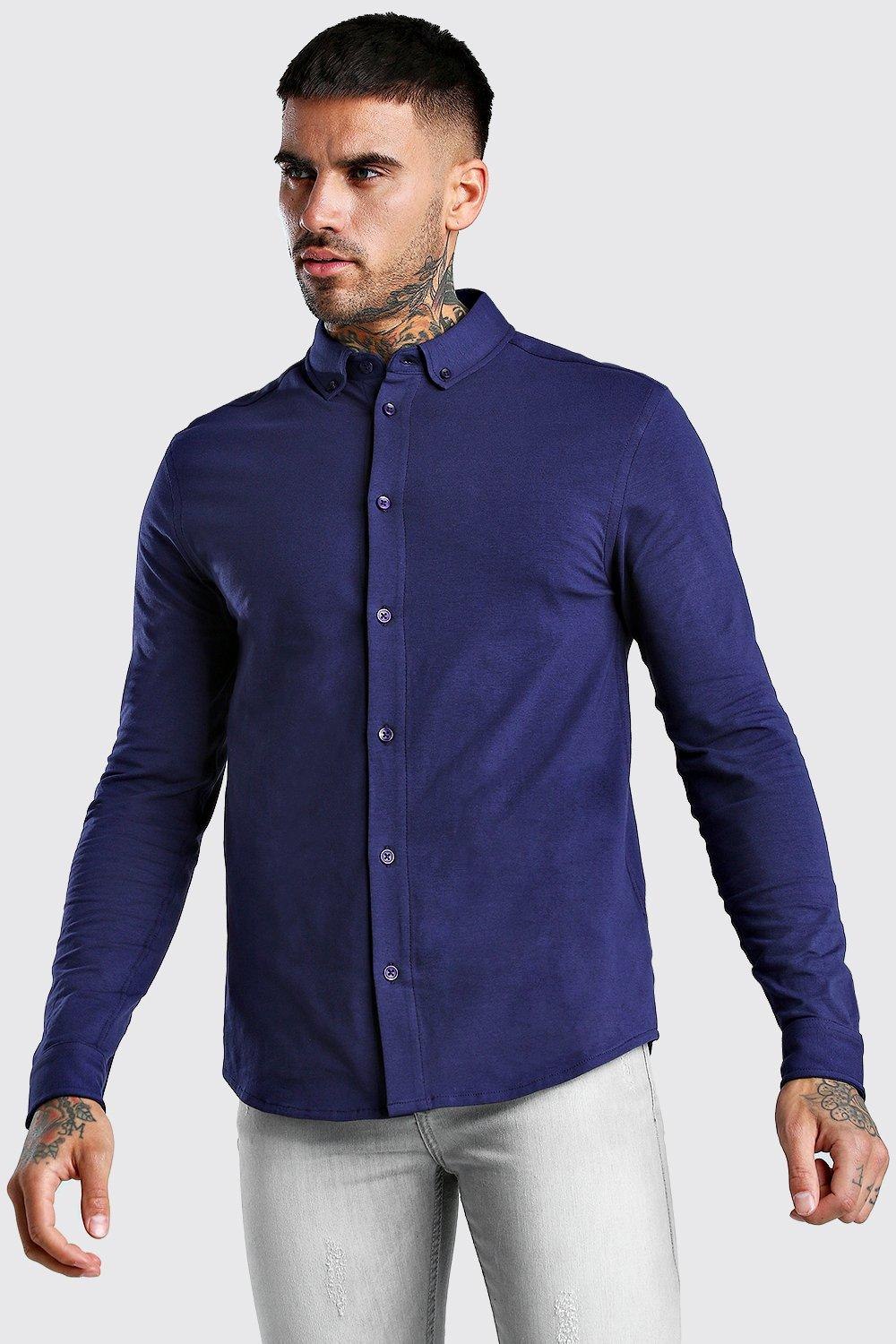 Однотонные рубашки мужские с длинным рукавом