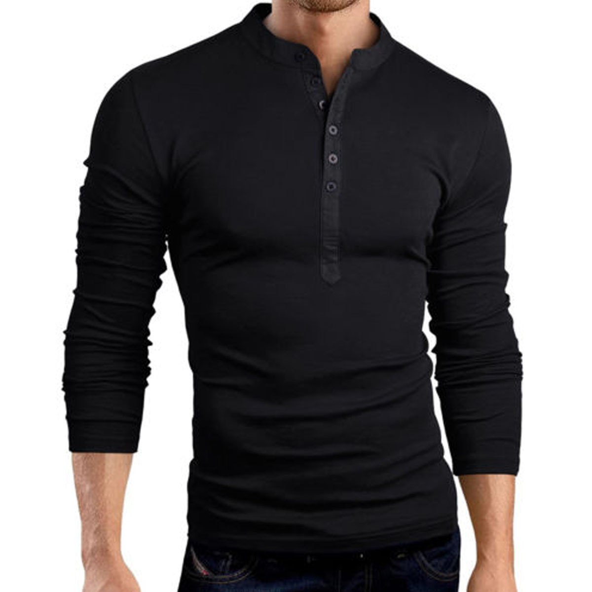 Футболка Хенли мужская с длинным рукавом 2018
