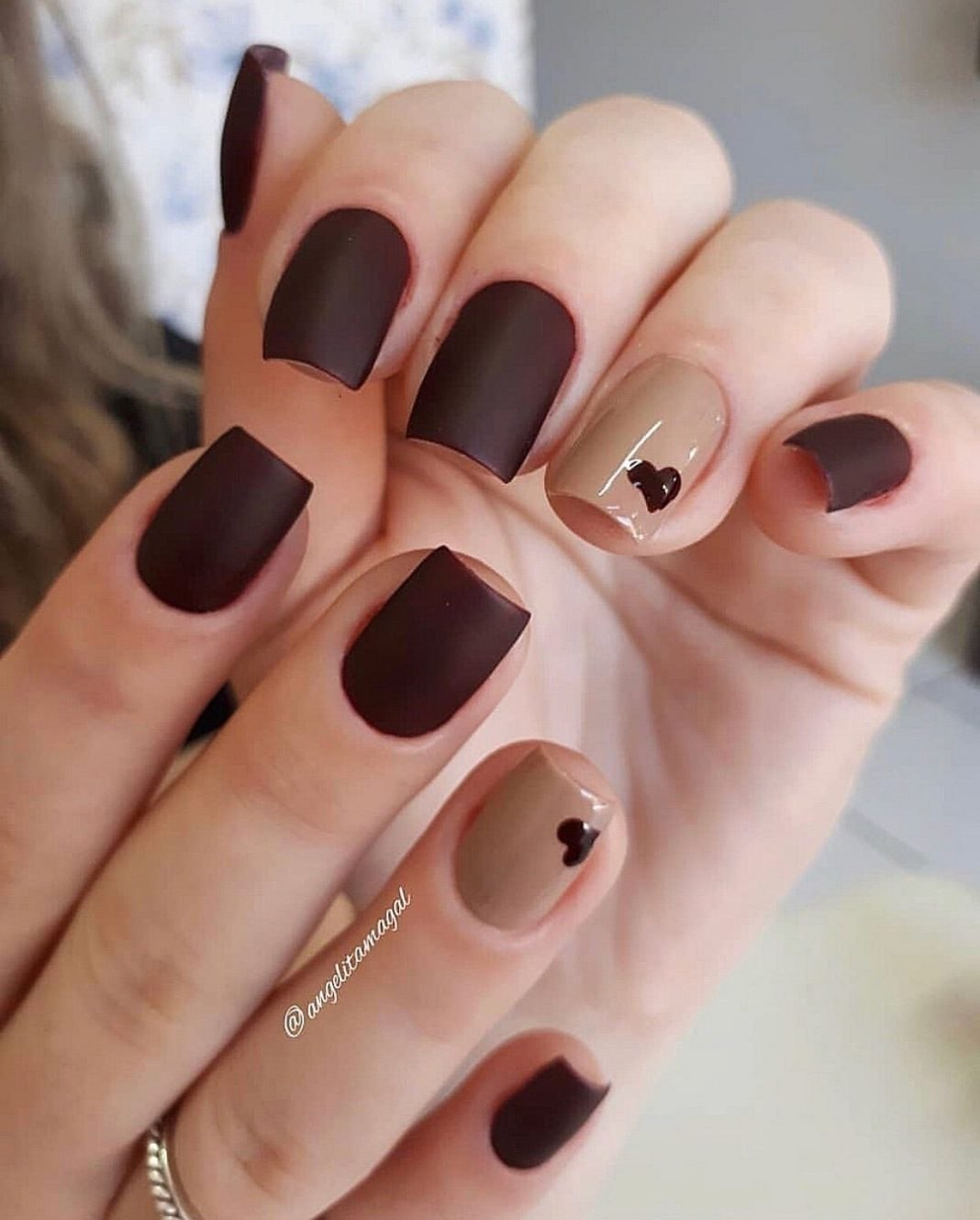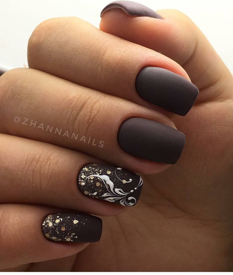 Маникюр коричневый матовый